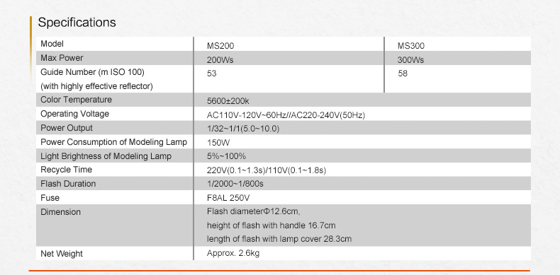 The MS Series Studio Flashes are lightweight, compact, and durable flashes with comprehensive functions. Designed for studio photography, portrait, and still life photography, the studio flash can be used as a background light or fill light source.