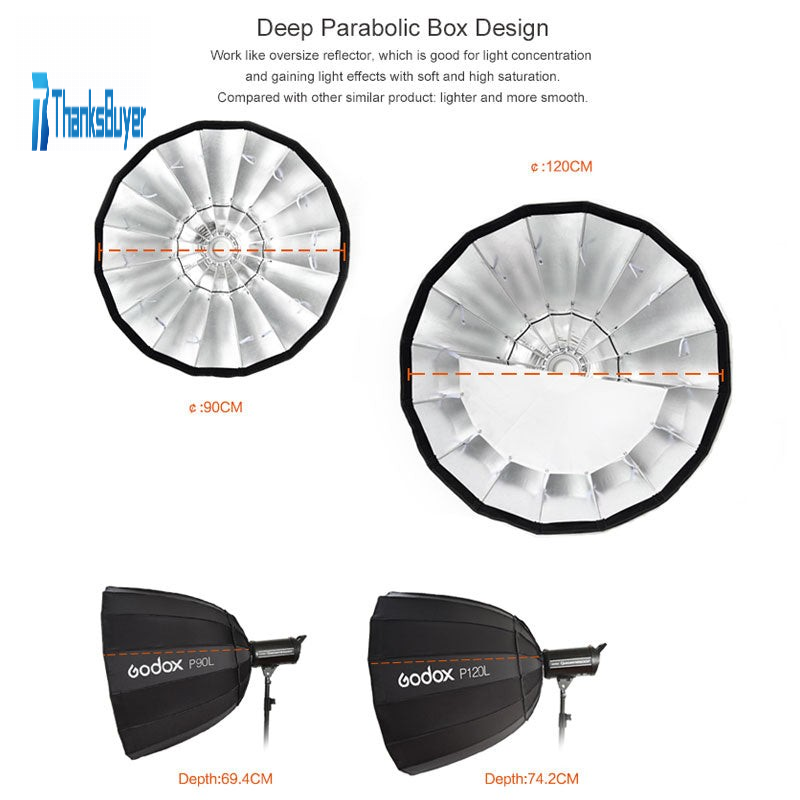 The Deep Parabolic Softbox adopts a parabolic design with a large depth and can send light straight from a long distance, so that the light decreases from the center to the edge, and the light changes more uniformly, providing high saturation and high softness for shooting. It is easy to install, easy to operate. It is portable and can be used widely.