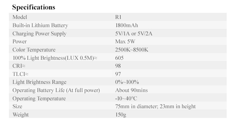 1 x USB Type-C Charge Cable