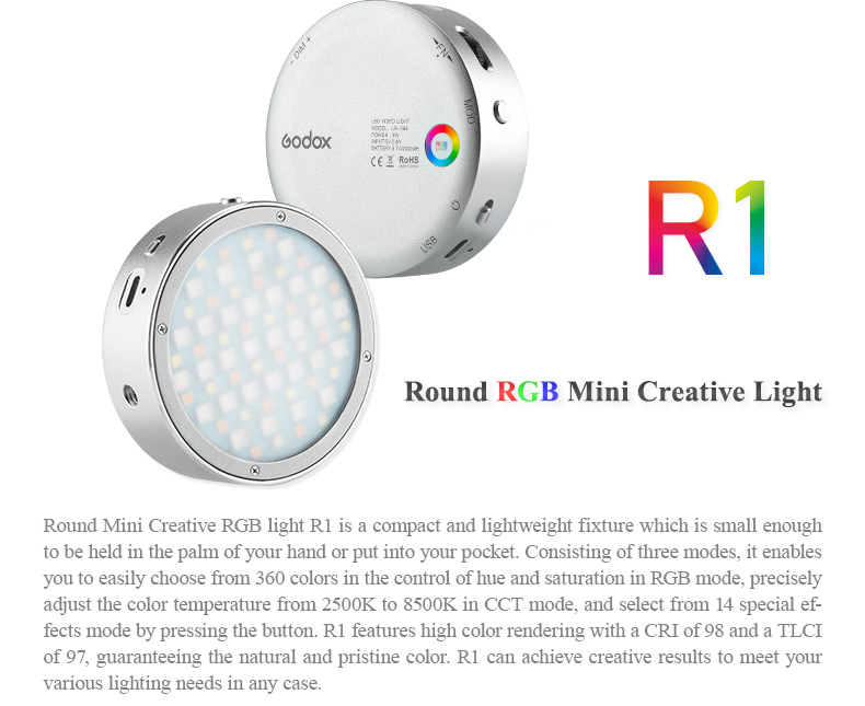 Godox R1 RGB LED Light Portable Photo Video Fill Light Dimmable Magnetic Photography Lighting