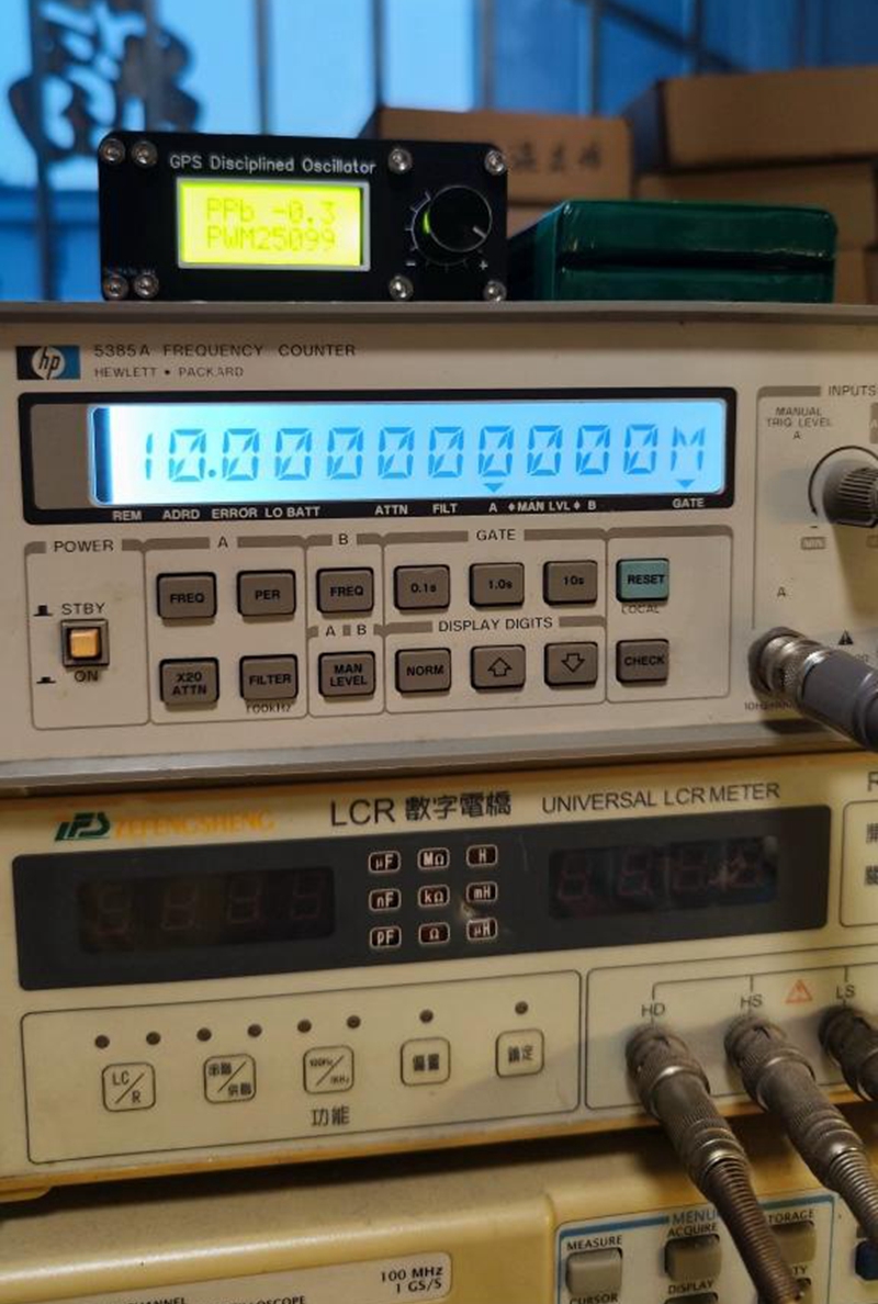 - It uses the 1PPS signal of GPS, and after comparison with the microcontroller, the microcontroller outputs 16Bit PWM to control the output accuracy of the constant temperature crystal. The frequency adjustment voltage of the constant temperature crystal is 0-5V, so 1Bit PWM can control the output voltage to 0.000076V.