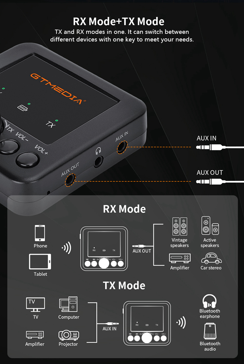 GTMEDIA RT05 Bluetooth Audio Adapter Bluetooth 5.0 Transmitter Receiver for Phones PC Headphones