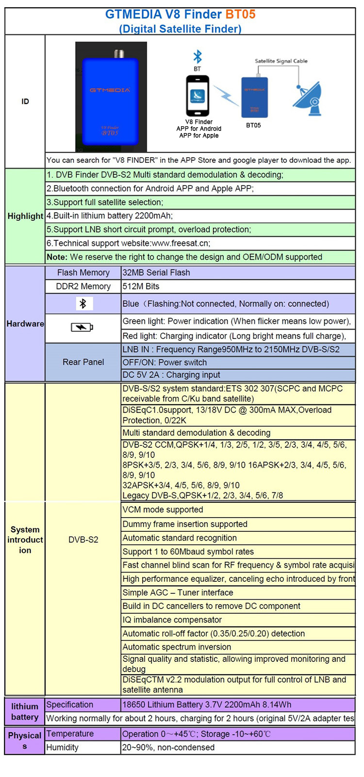 GTMEDIA V8 Finder BT05 Digital Satellite Finder Bluetooth Satellite Signal Finder DVB Finder Box