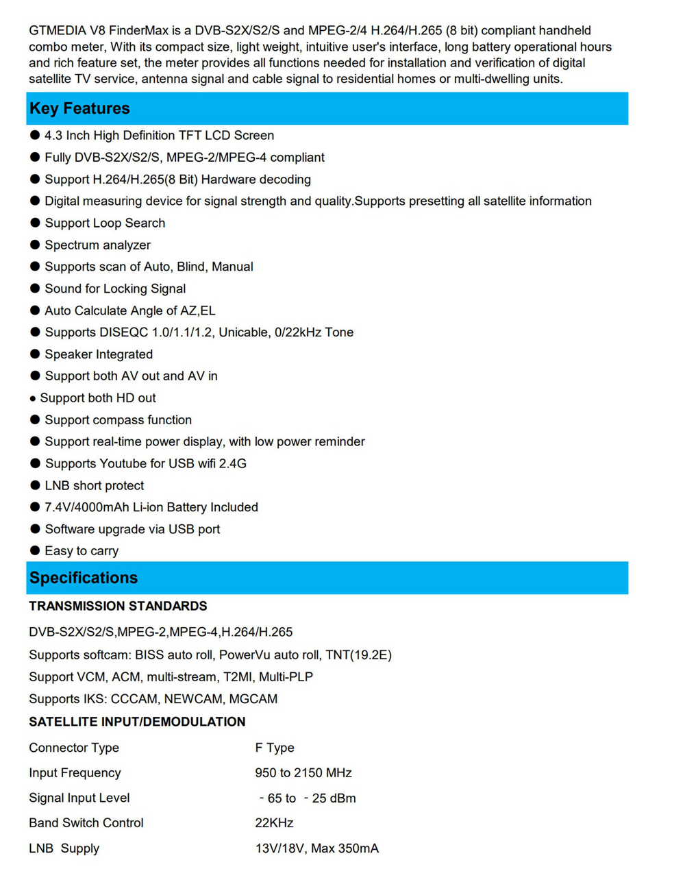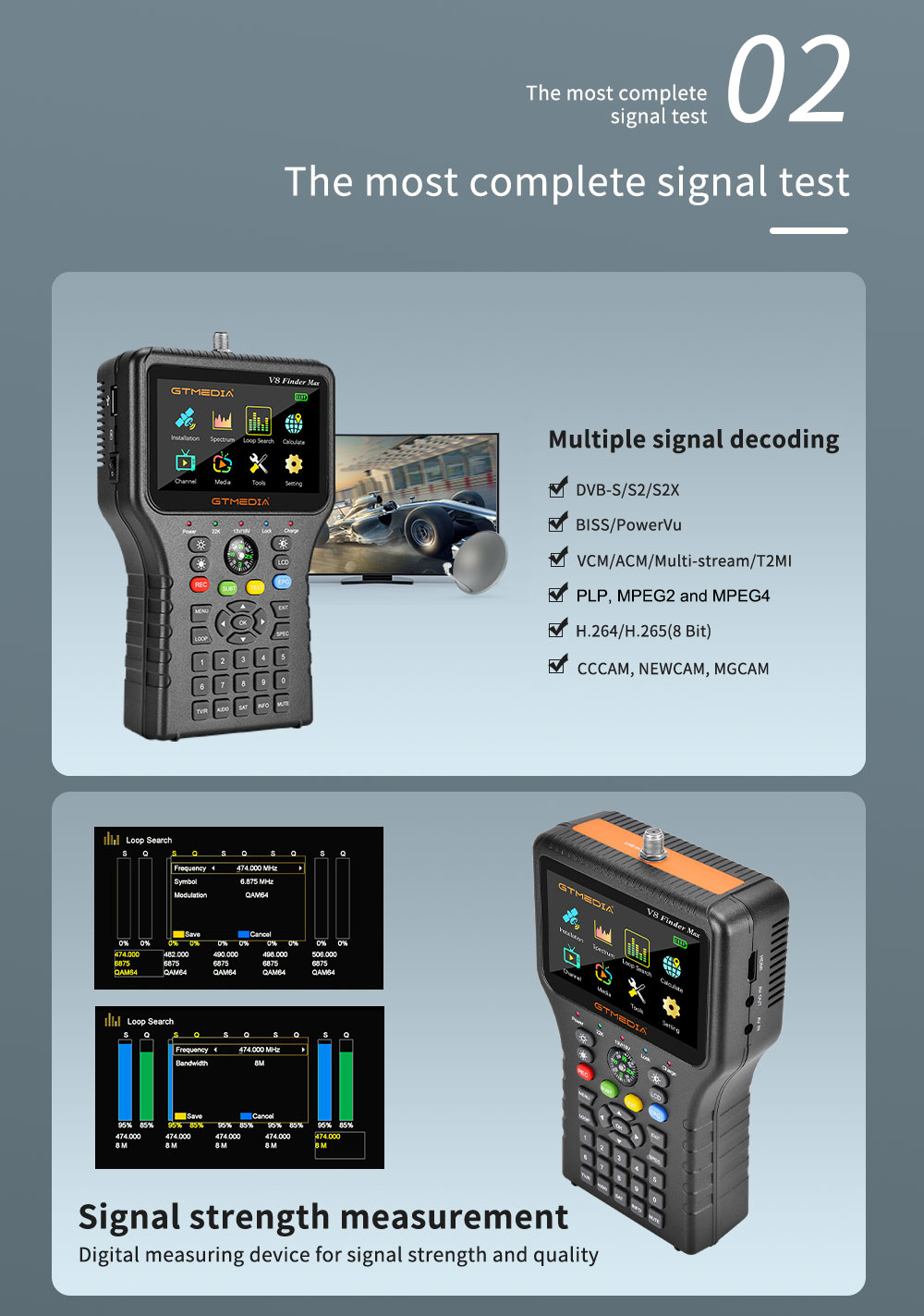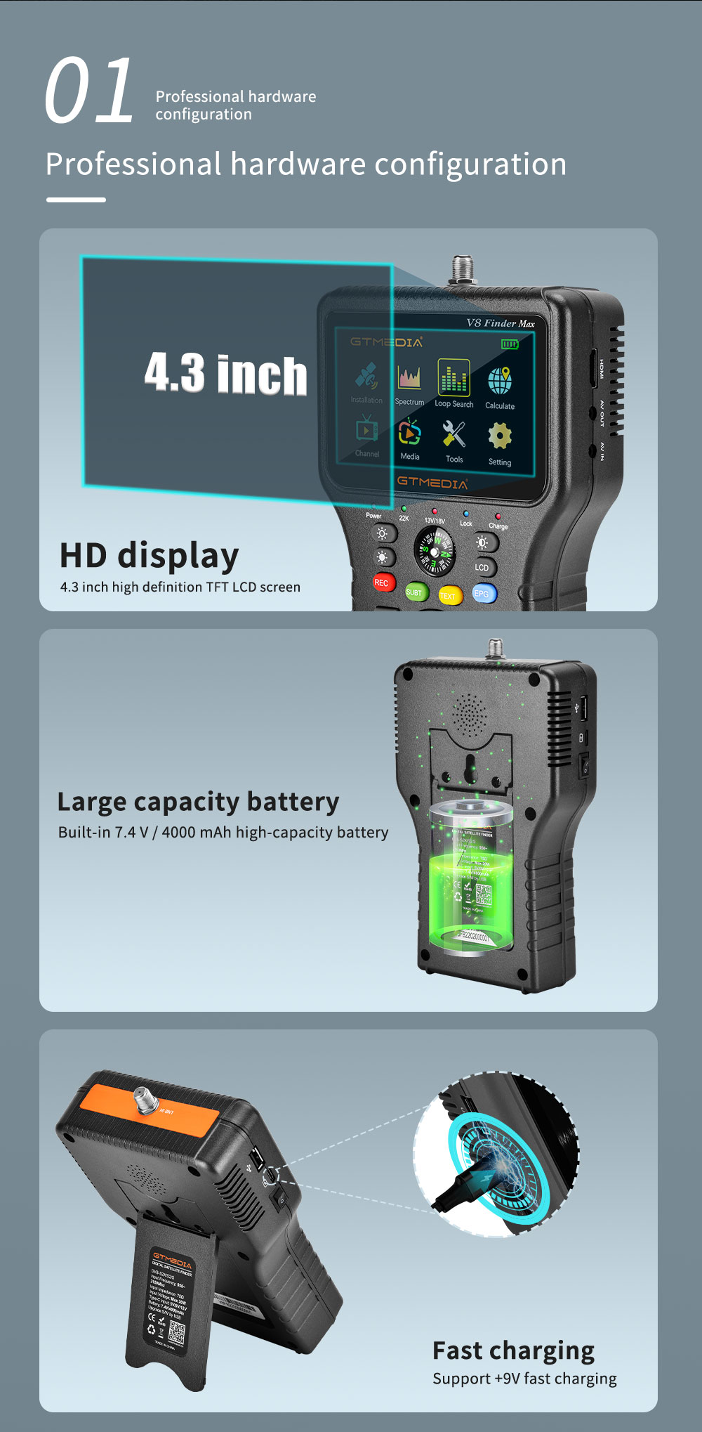 GTMEDIA V8 Finder Max Satellite Finder Satellite Signal Finder DVB-S2X/S2/S with 4.3 Inch Screen