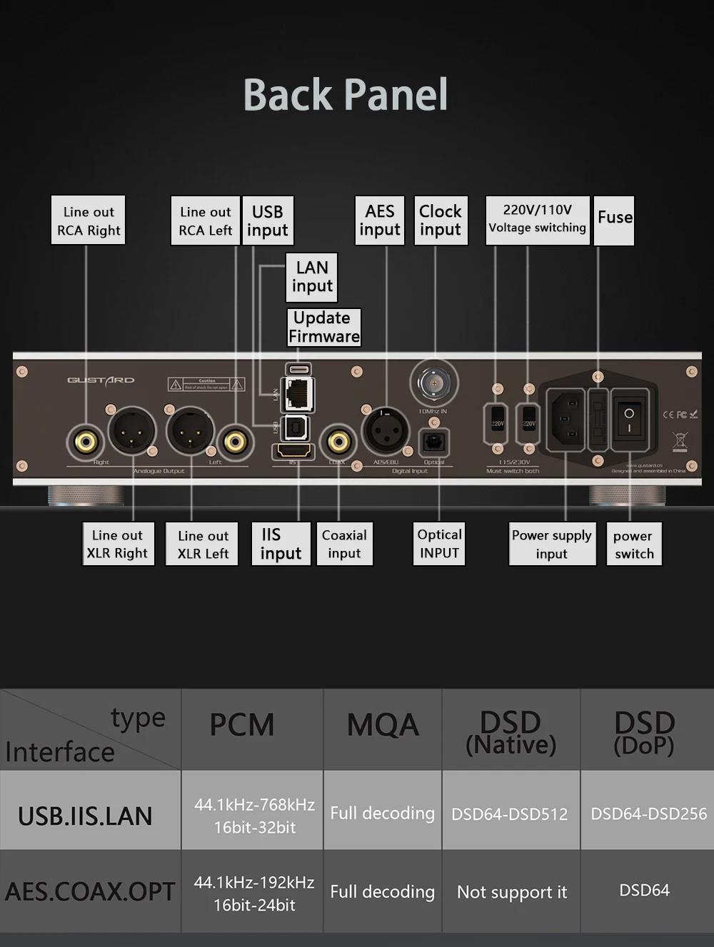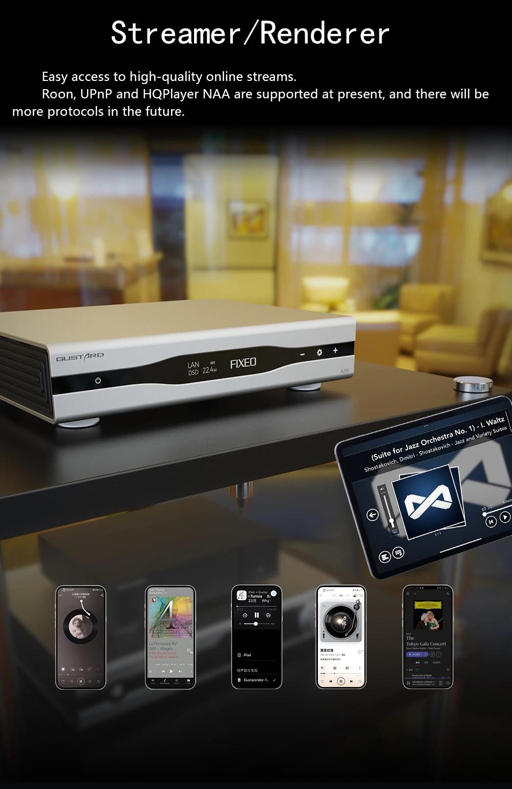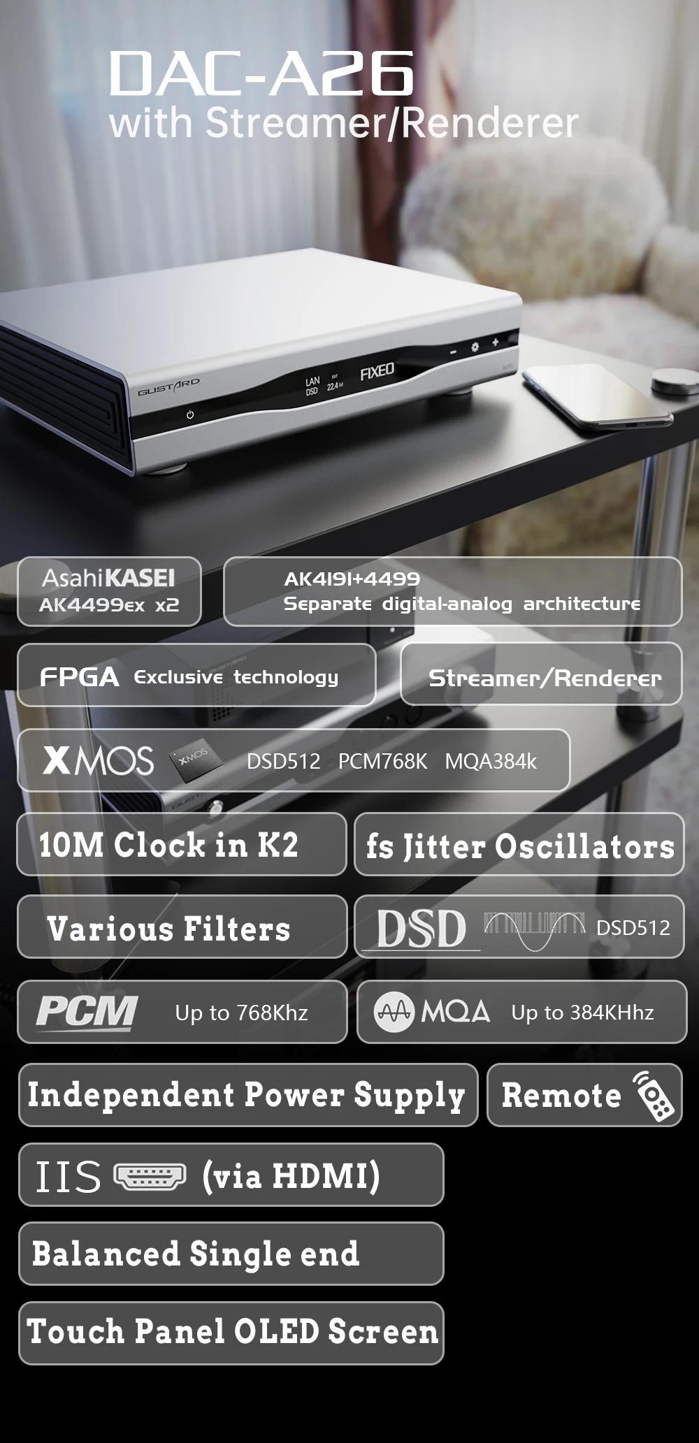 GUSTARD Black GUSTARD DAC-A26 Network Audio Streamer 2xAK44999EX Decoder Network Bridge DSD512 MQA with OLED Touch Screen