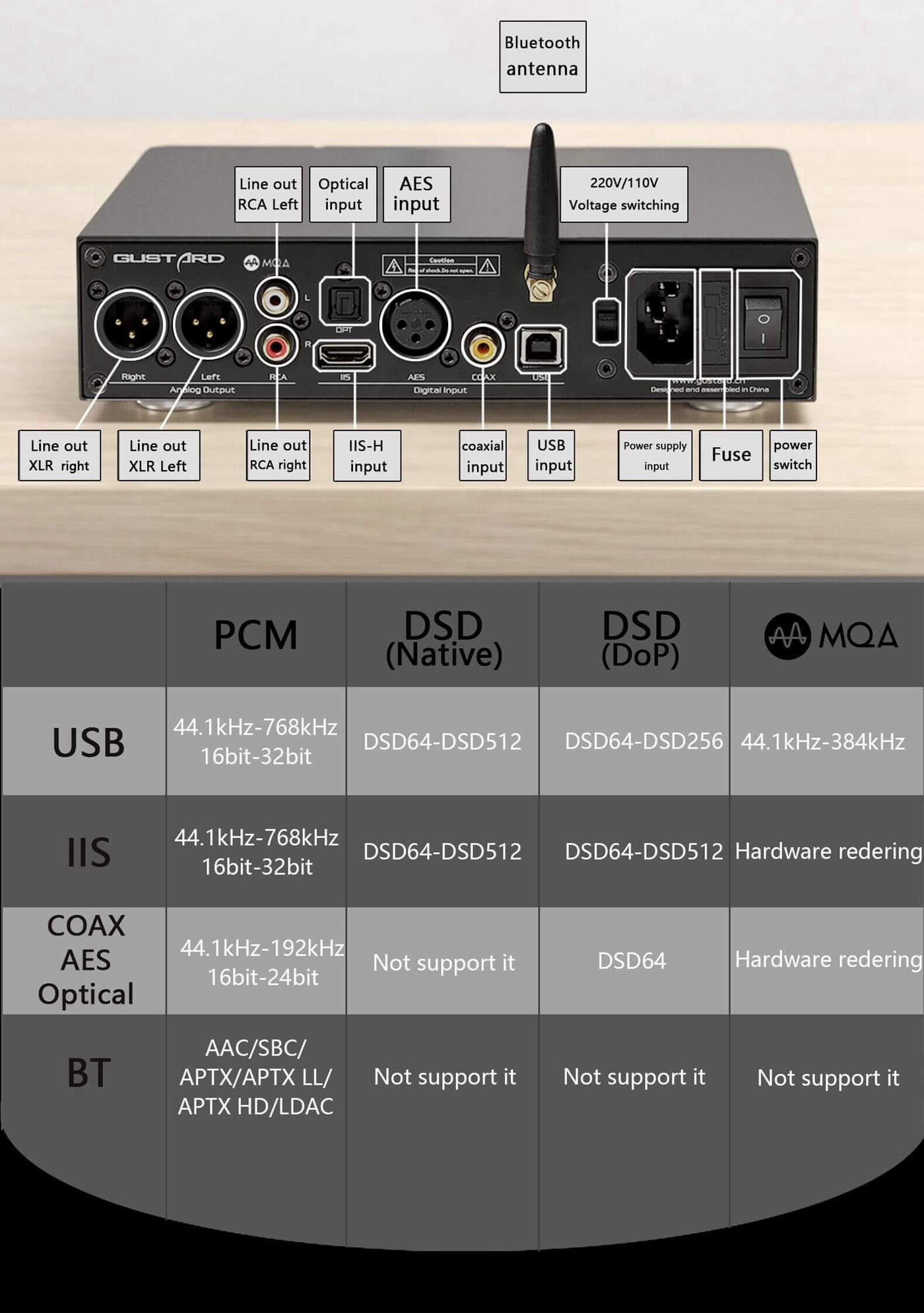 - Support IIS, AES, coaxial and optical. Support MQA 2, 3 times expansion