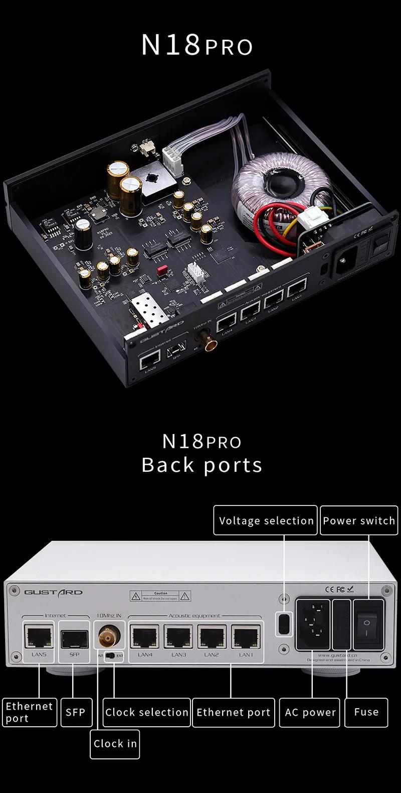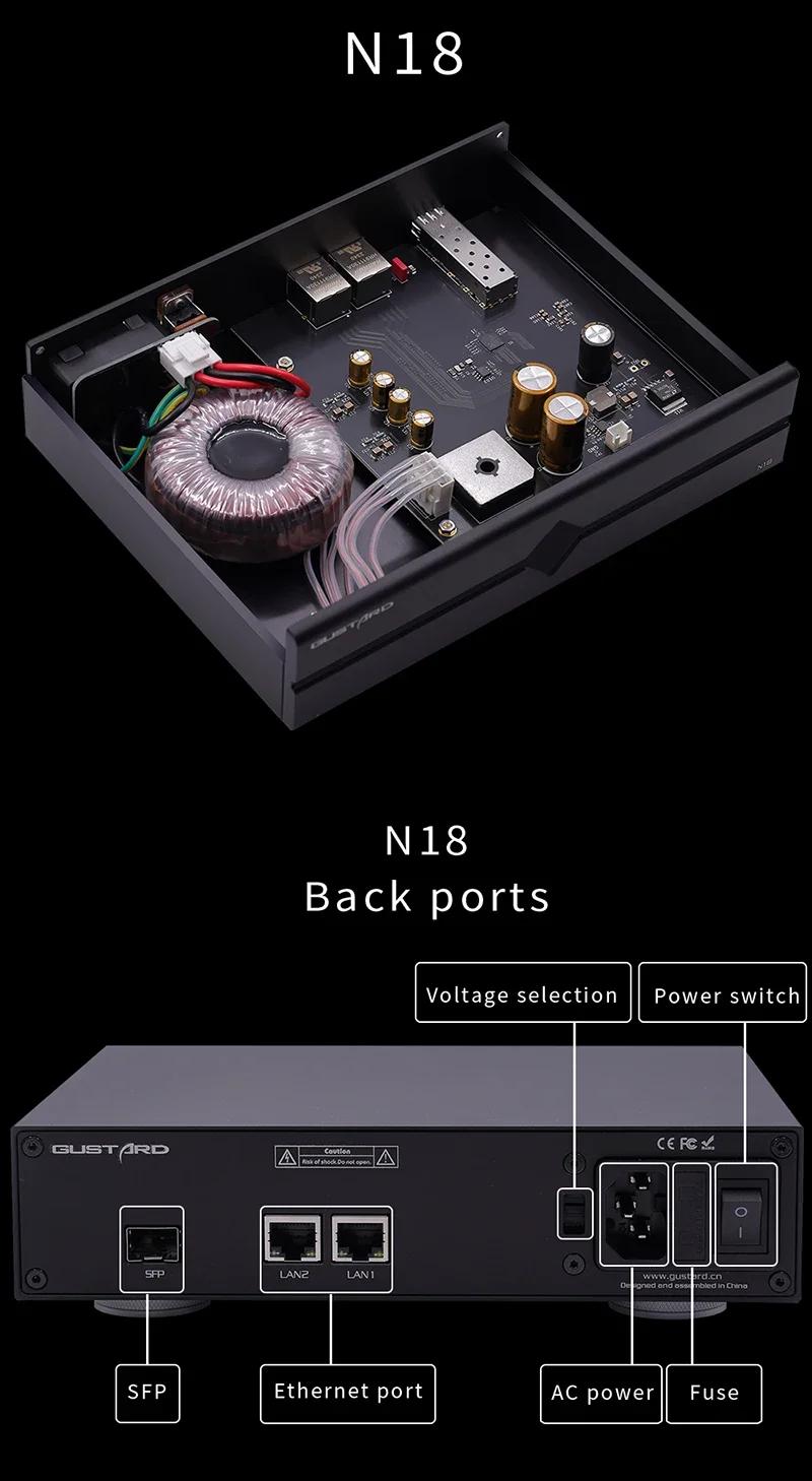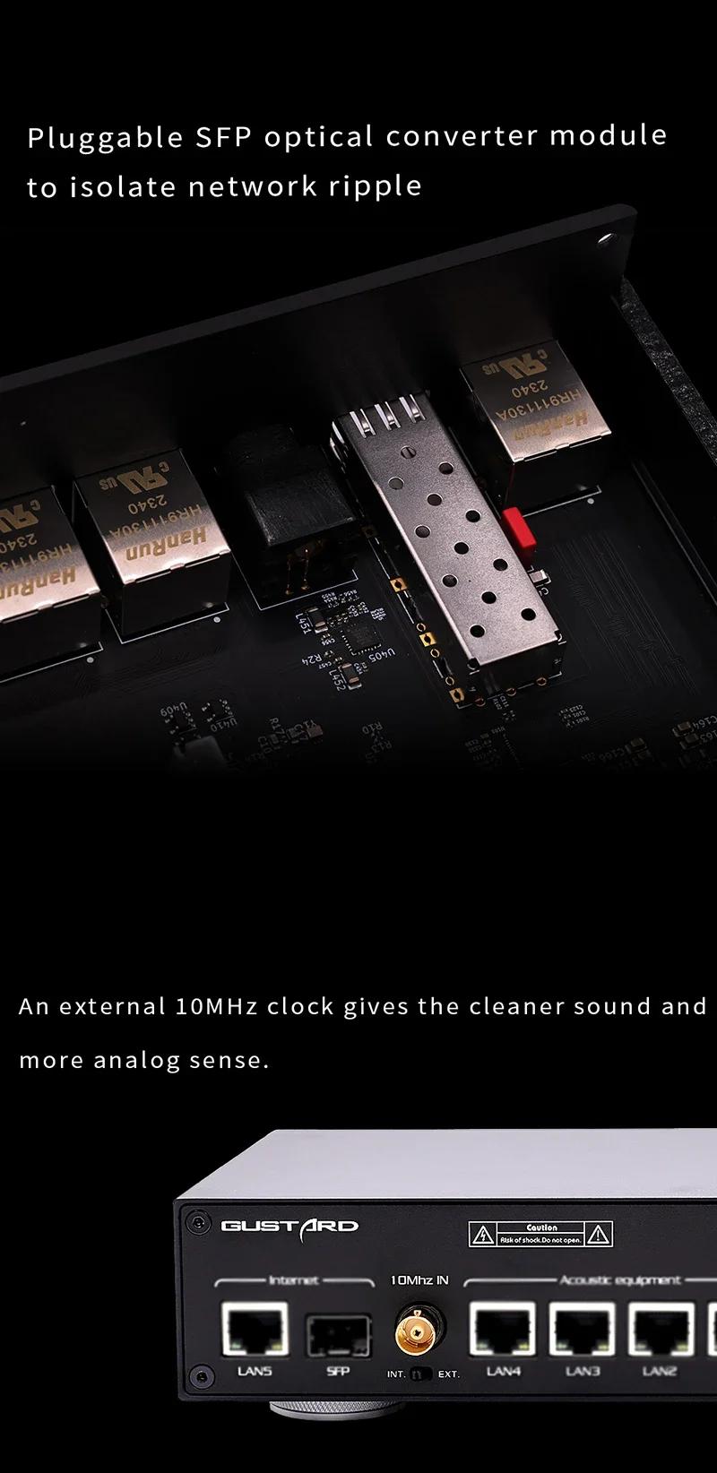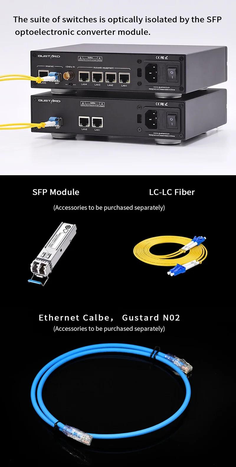 GUSTARD Silvery N18Pro HiFi Audio Ethernet Switch Optical Isolation Support 10/100/1000M Ethernet Interface 4+1 LAN