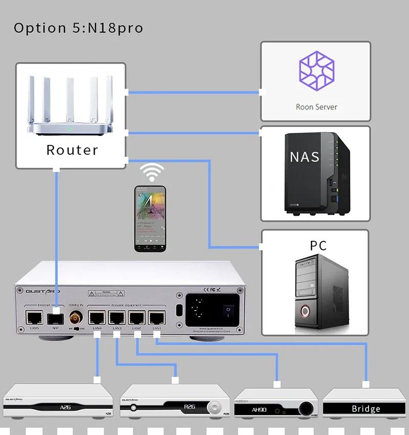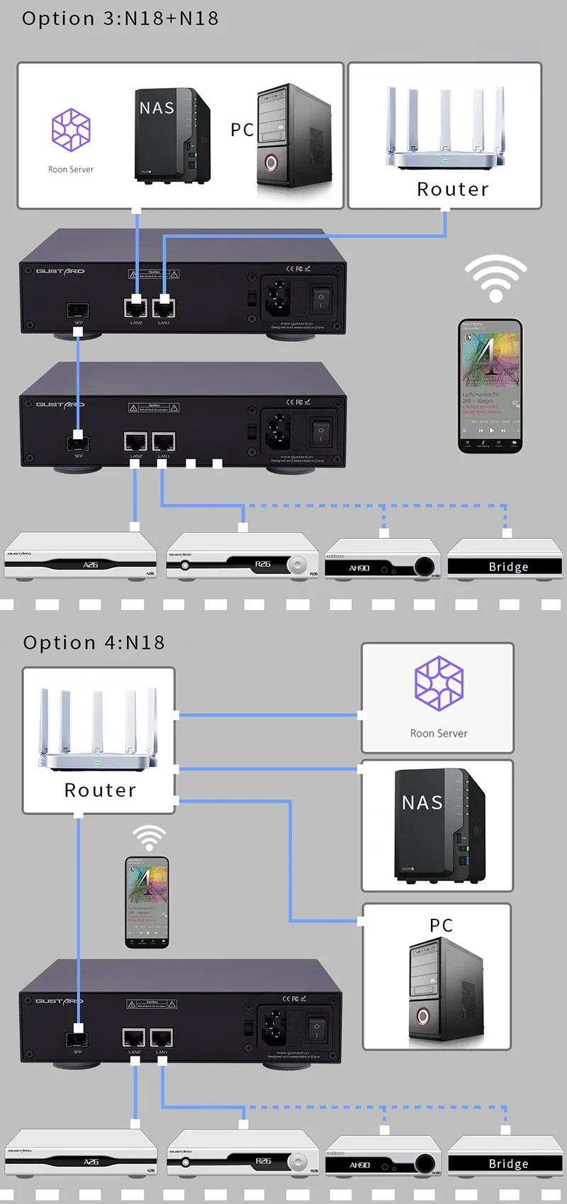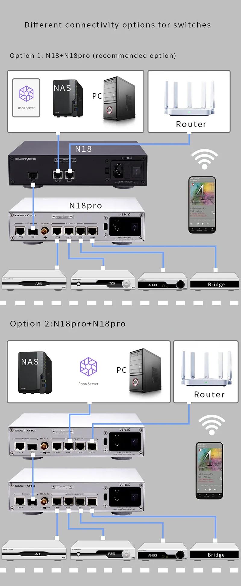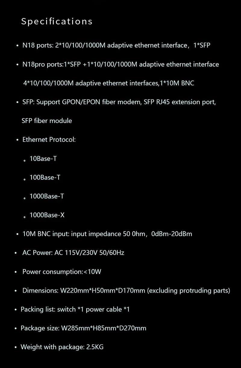 GUSTARD Silvery N18Pro HiFi Audio Ethernet Switch Optical Isolation Support 10/100/1000M Ethernet Interface 4+1 LAN