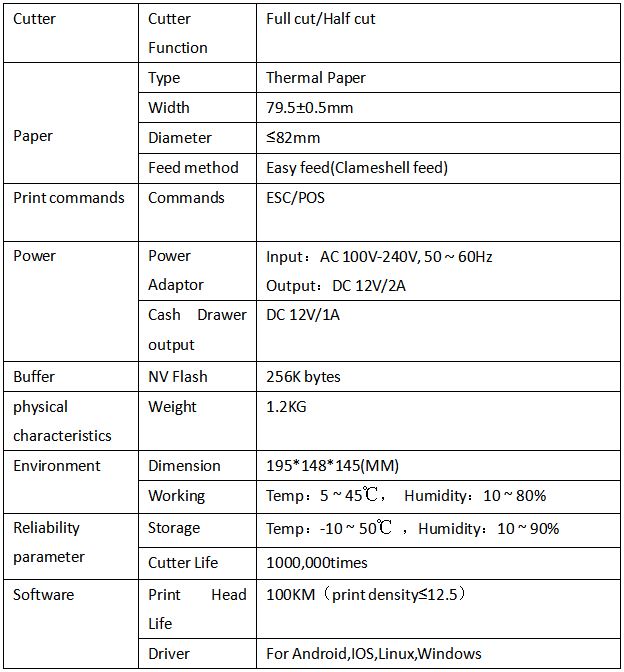 It is the latest designed thermal receipt printer with high performance, muti-function and multi-purpose. Outlook design with full sense of fashion and scientific; Support vertical placing and printing; Industry-leading low power consumption and power saving design; Support billing coming reminder and error warning function; Rich interfaces: USB, Ethernet port, Bluetooth; Real-time printing monitoring function can avoid losing bills and create you a enjoyable and extraordinary printing experience.