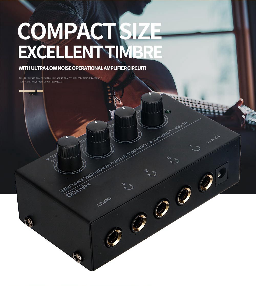 - Compact 4-channel stereo headphone amplifier can be used for up to four headphones at the same time for simultaneous listening of main mix with separate volume control. It comes with four powerful stereo amplifiers that deliver outstanding performance at any volume. Clear sound with ultra low-noise 4580 operational amplifiers that are used in studio equipment.