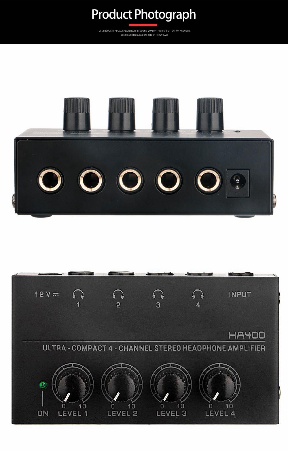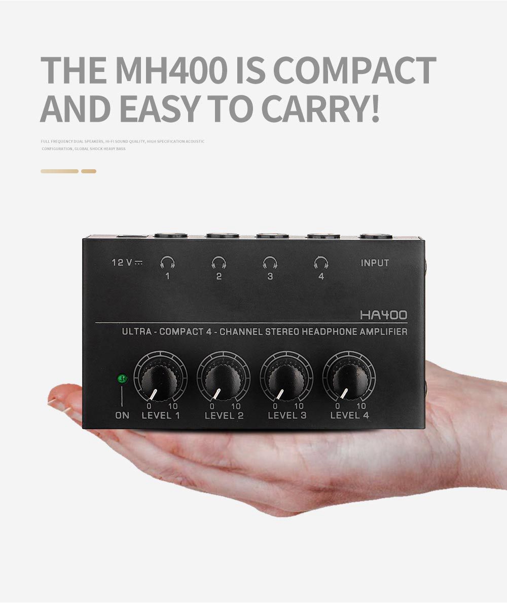 HA400 Headphone Amplifier Ultra-compact 4-Channel Independent Control Stereo Headphone Amplifier 20Hz-20KHz