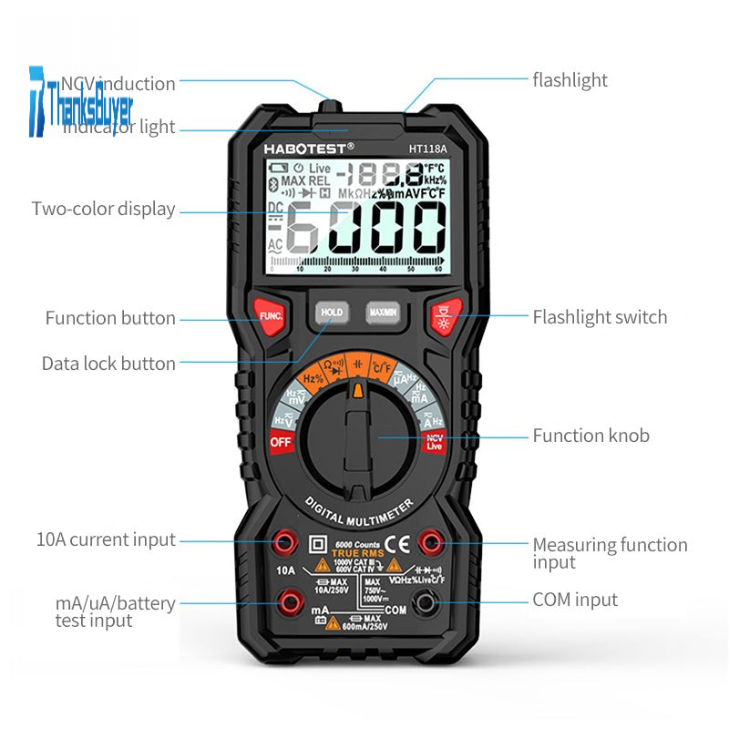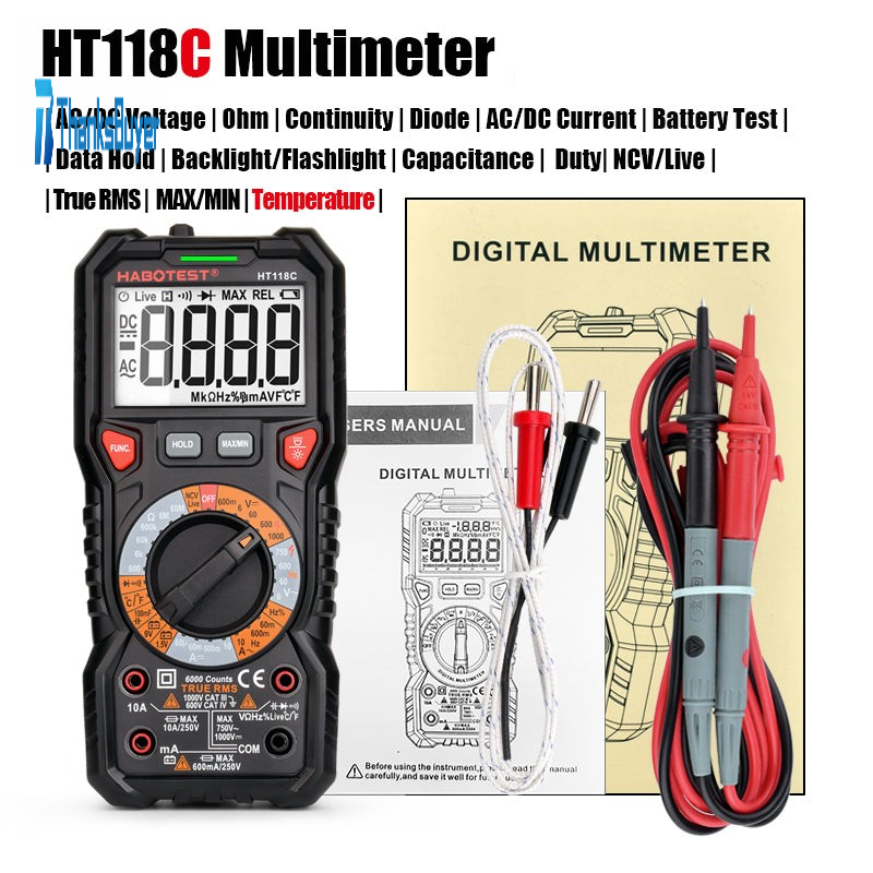 HABOTEST HT118C Manual Range Digital Multimeter Tester NCV TRMS 6000 Count Temperature Test Function