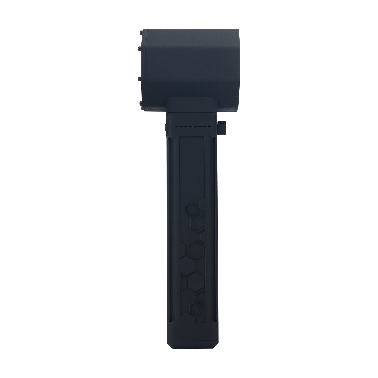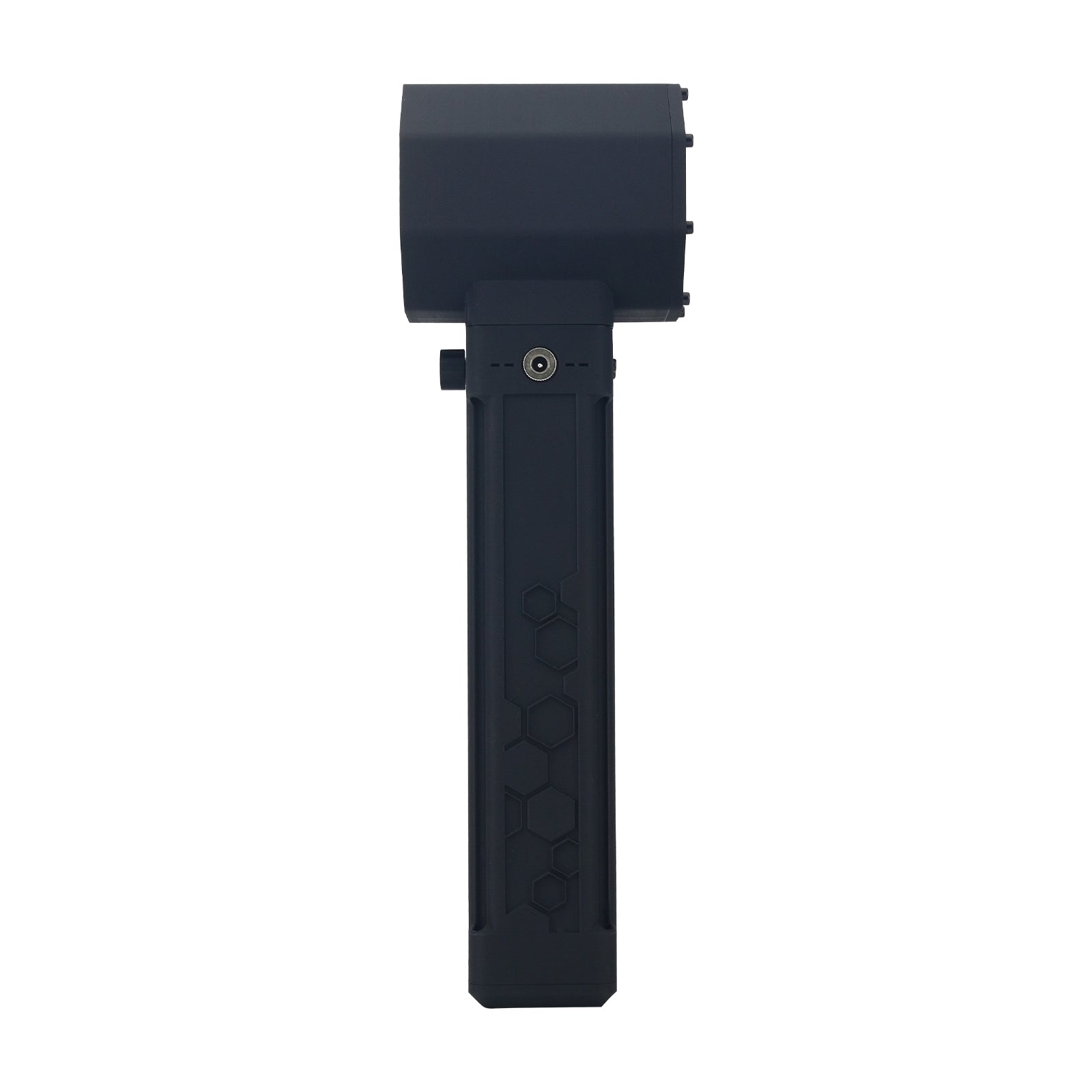 - Battery level indicator lights at the bottom of the fan