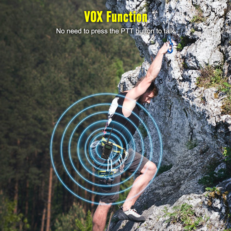 - VOX voice-activated transmission, no need to press the PTT button to talk normally