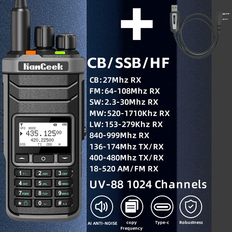 HamGeek UV-88 1024 Channels + 2 VFO Channels Walkie Talkie (Standard Version + Programming Cable)