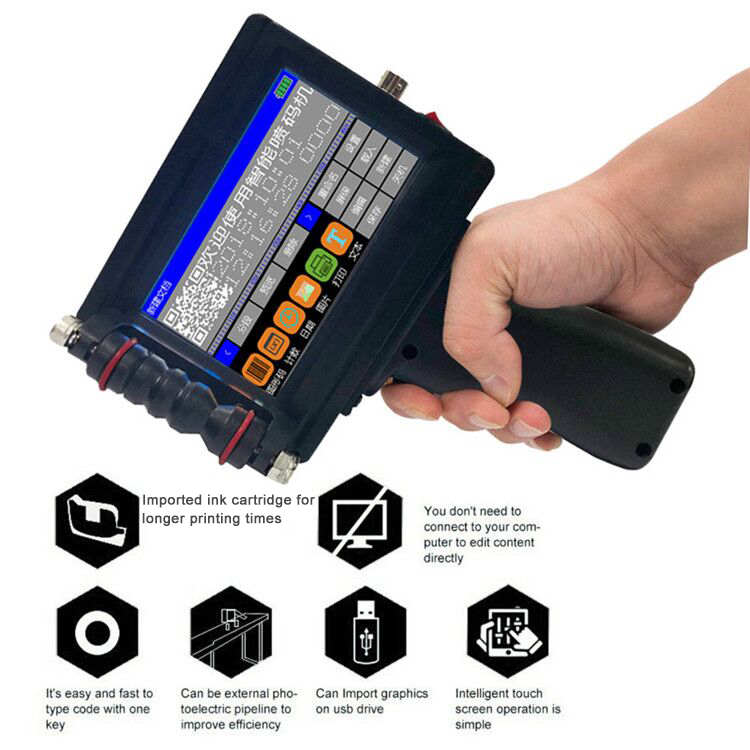 Handheld Inkjet Printer 1681B 4.3" Touch Screen 600DPI + 42ml Black Imported Ink Cartridge