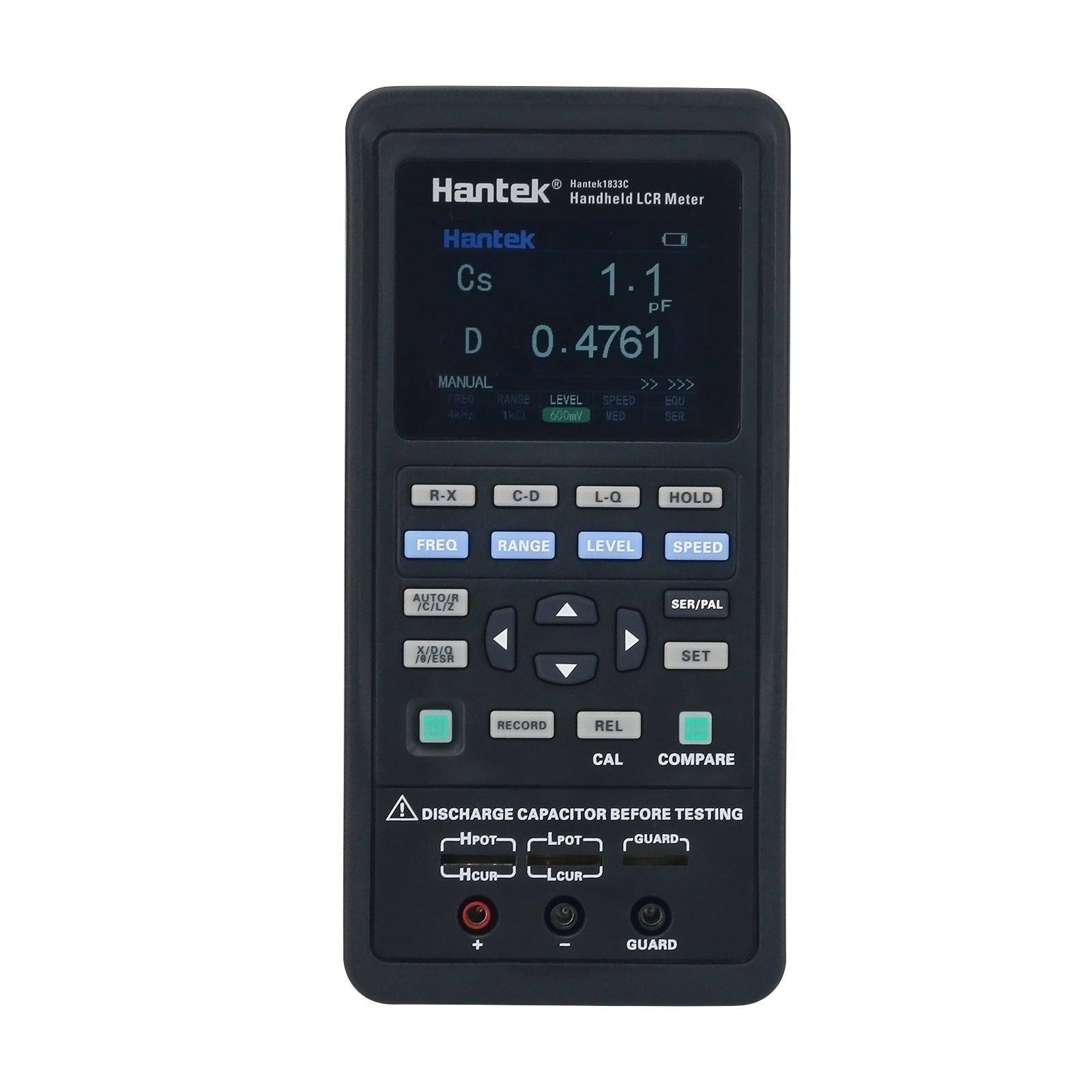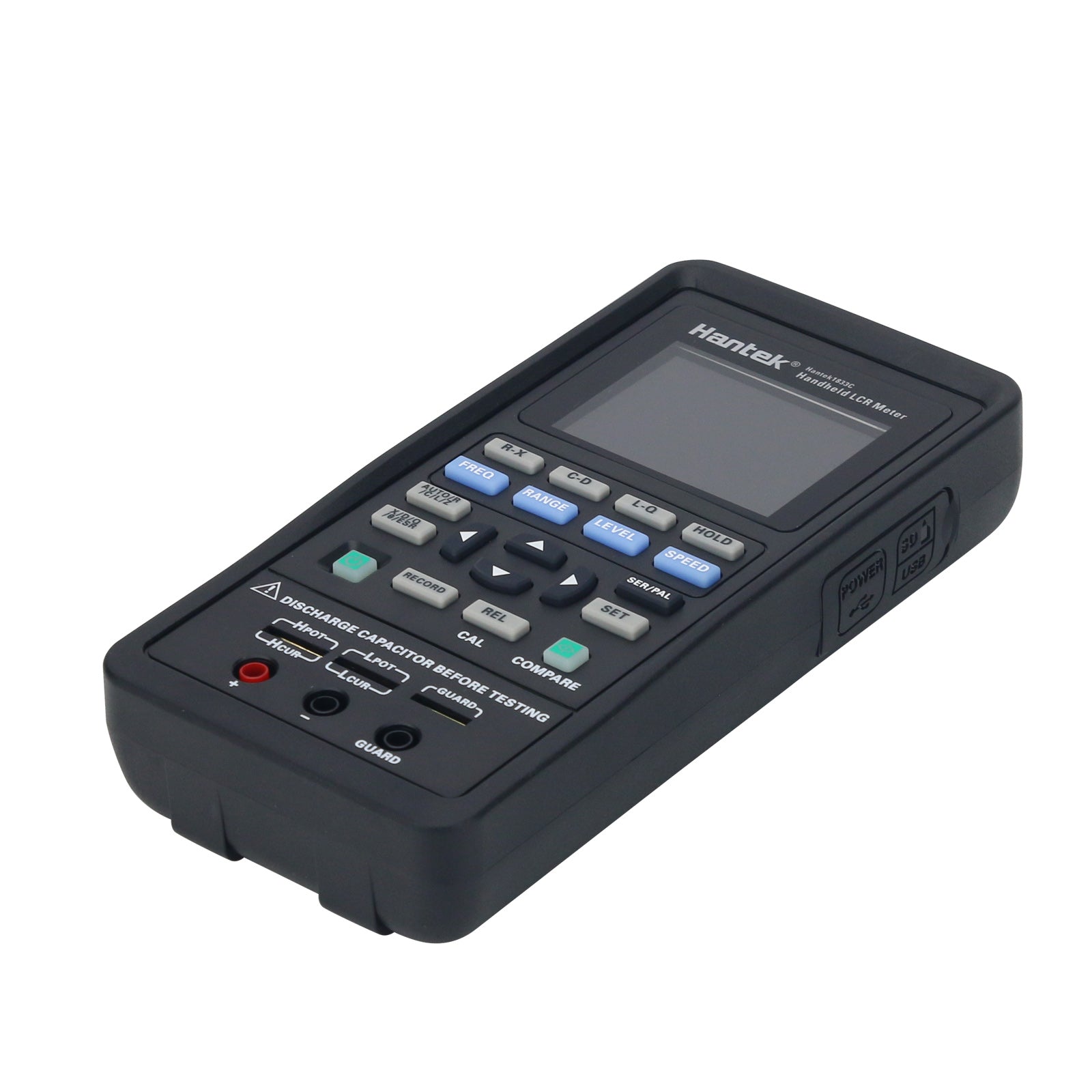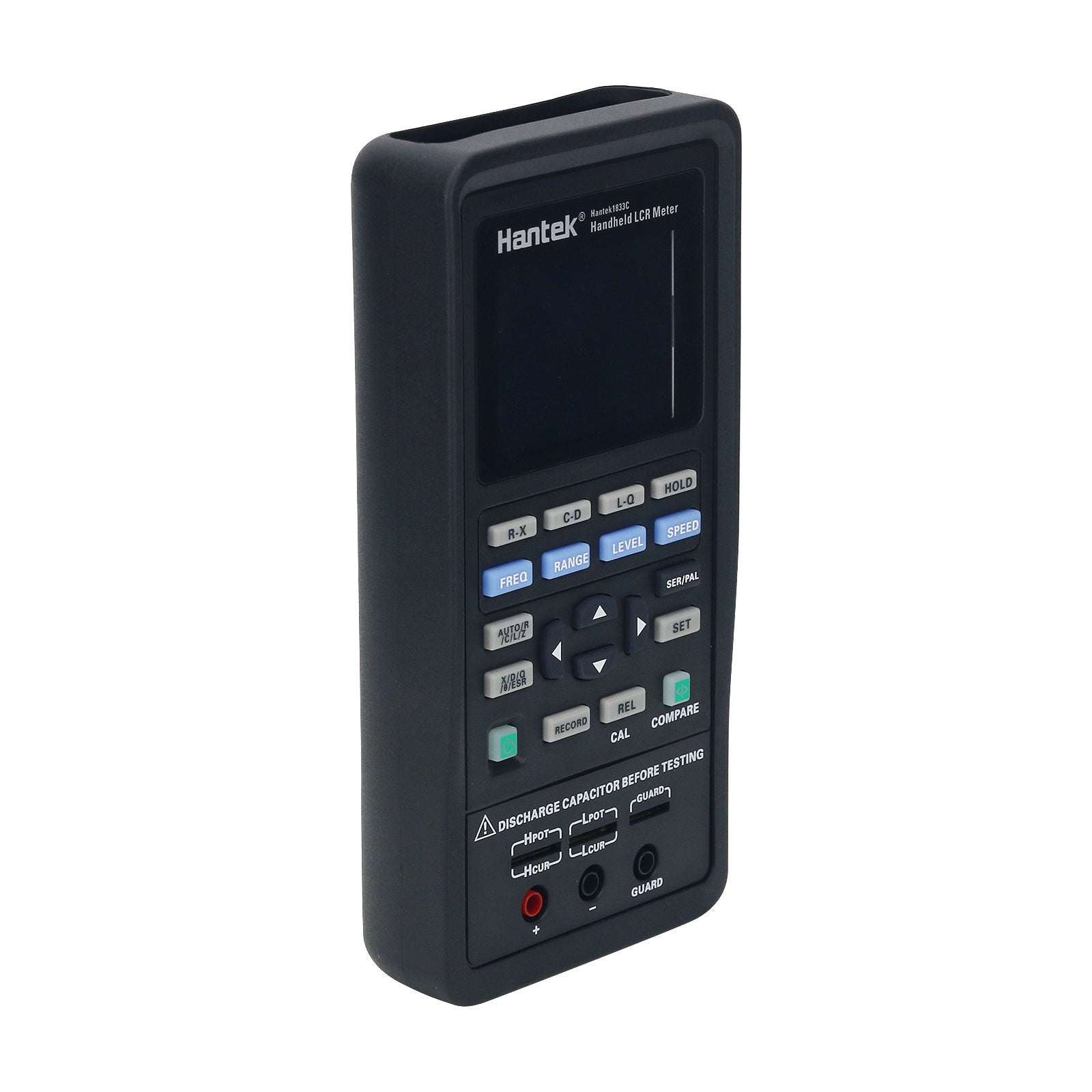 - Hantek1833C handheld LCR Meter is a portable handheld measuring instrument to measure the parameters of the component such as inductance, capacitance, resistance and so on.small volume, powered by 5V lithium battery, it can meet the requirements of desktop LCR application, and can also be applied to flow measurement and handheld measurement.