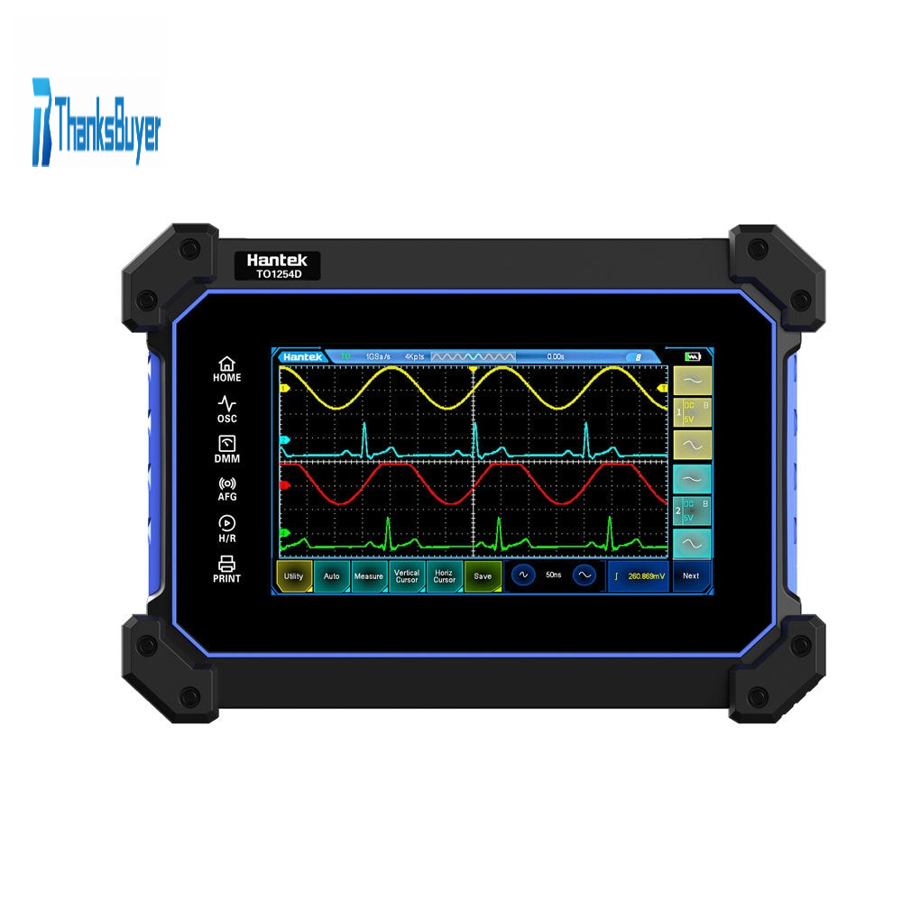 - The new generation of TO1000 series multi-functional full touch screen oscilloscope has a thin body, light weight and is easy to carry; Unique hanging design, hands-free, anti falling and anti-seismic, sturdy and durable; It integrates oscilloscope, multimeter, signal generator and spectrum analyzer; Built in super large capacity battery, long endurance, support fast charging, and abundant power.