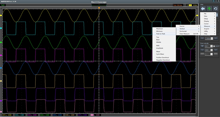 Support 4 types of cursor measurement mode -cross,track, horizontal, and vertical. It's easy to read out the time and voltage of irregular signal.