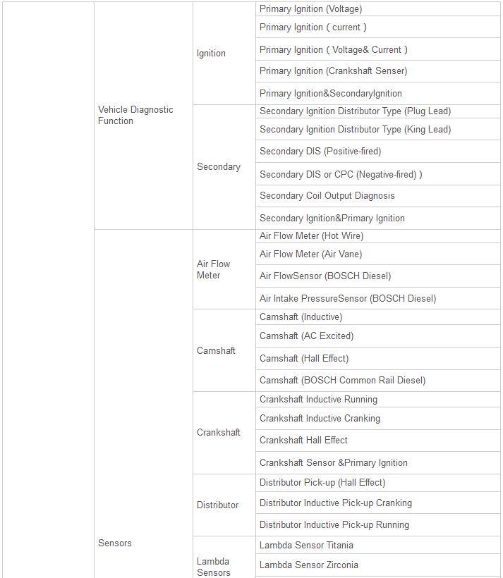 There are three functions of vehicle diagnosis, oscilloscope and signal generator, including 78 types of vehicle diagnosis function.