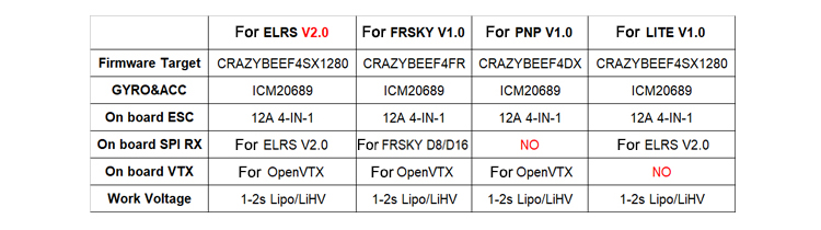 - For X12 ELRS V2.0 flight controller built-in ELRS 2.4G receiver Target: CRAZYBEEF4SX1280