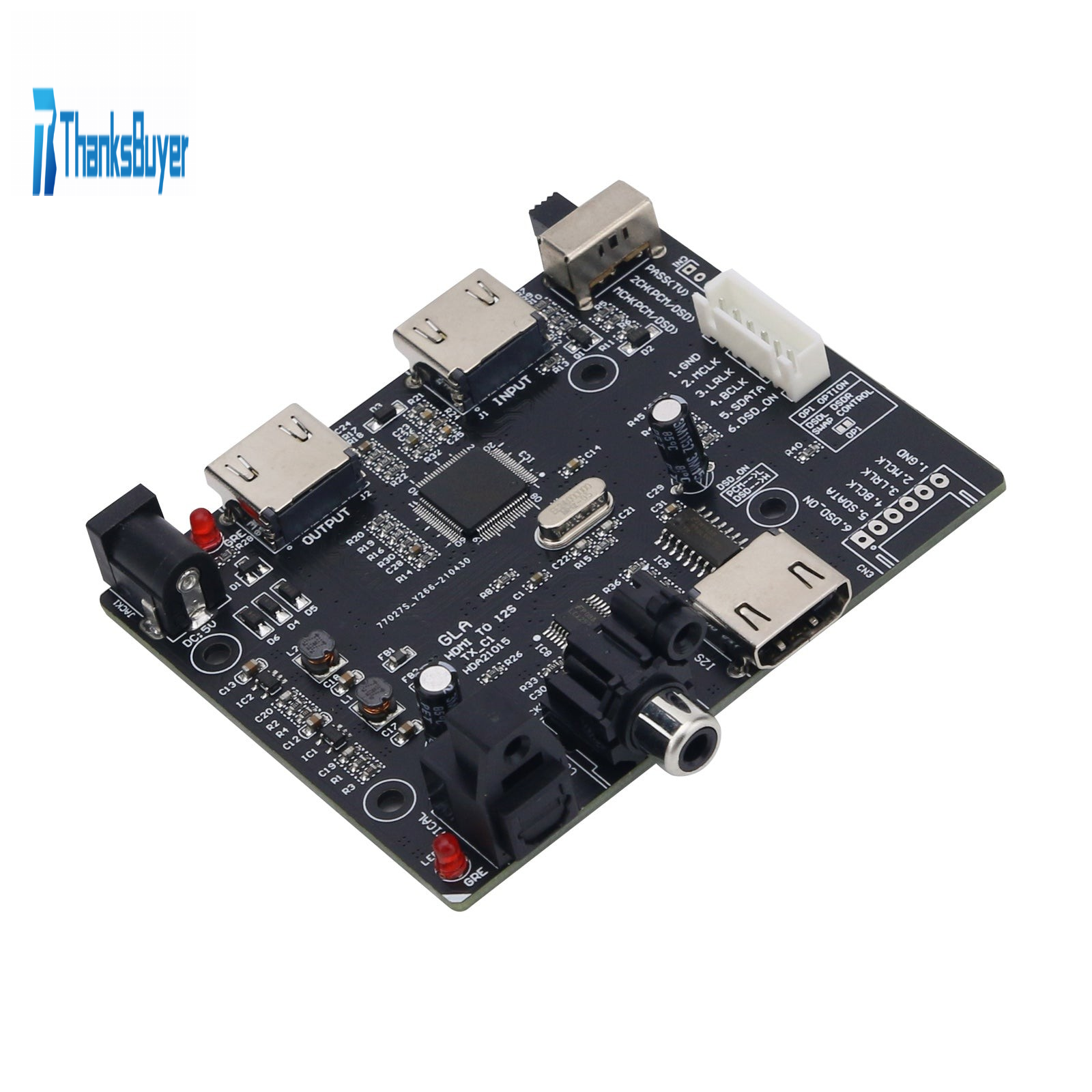 - HDMI input, HDMI output, coaxial output, optical output, I2S output, HDMI OVER I2S output.