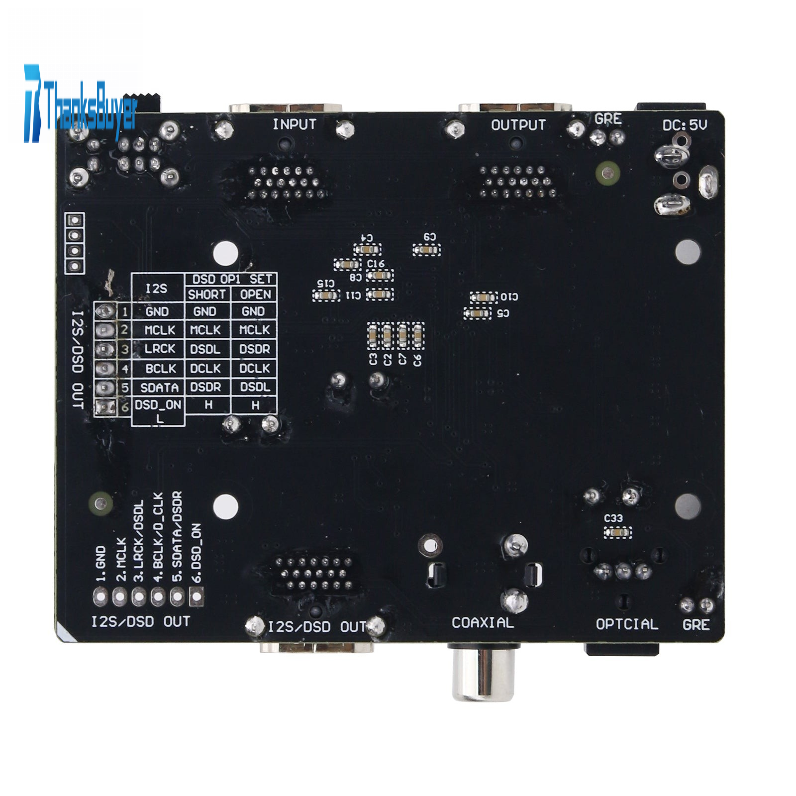 - I2S output pins connect to the DAC installed inside decoder.