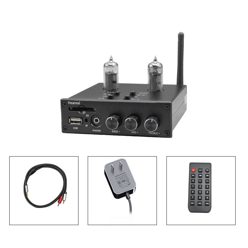 - Two audiophile tubes: Soft and warm tube tones that are transparent, powerful and more endearing. Tubes can be replaced by other tubes, such as 6K4, 6J1, 5654, etc.