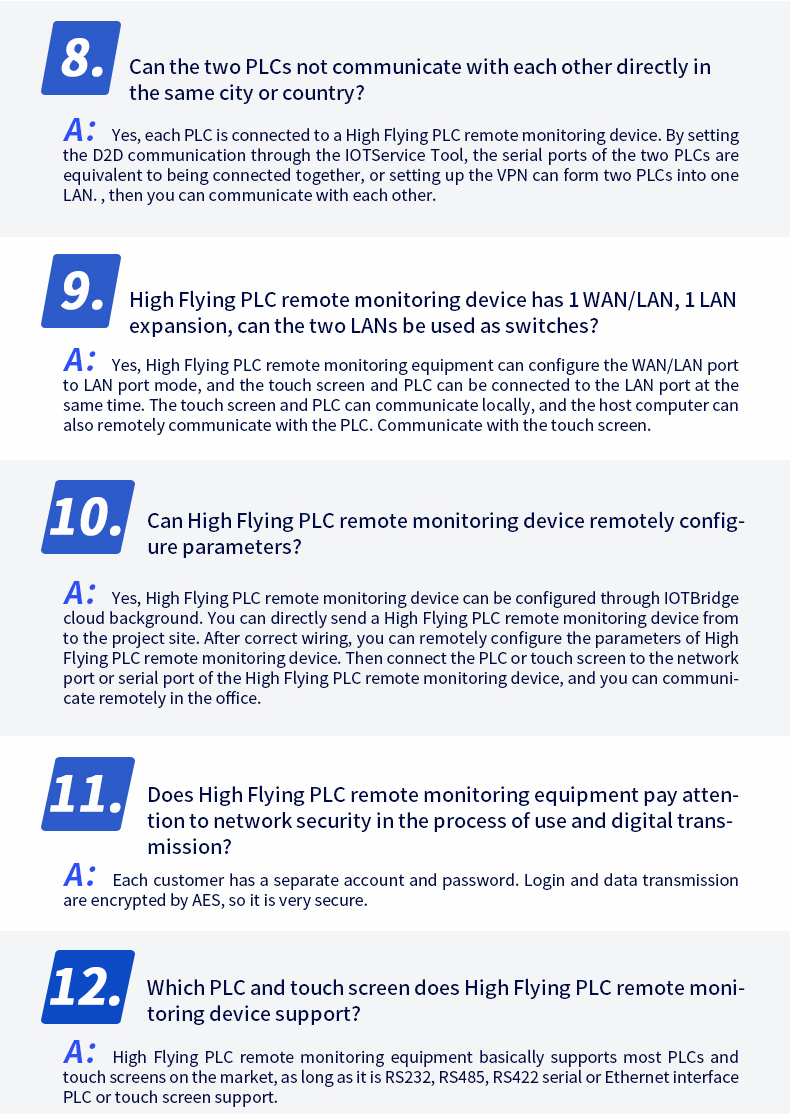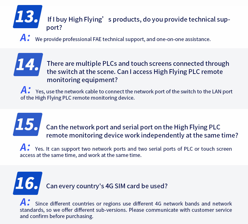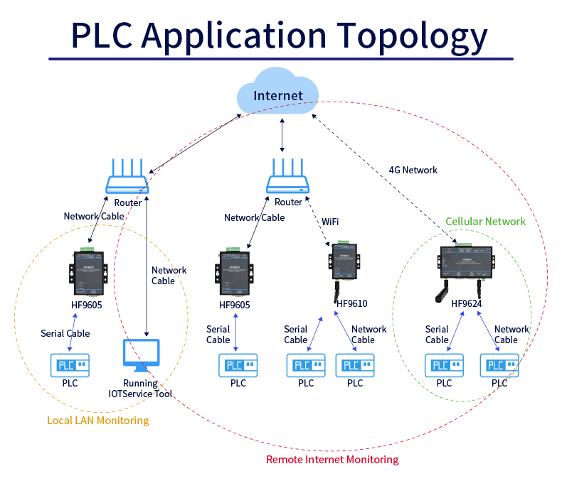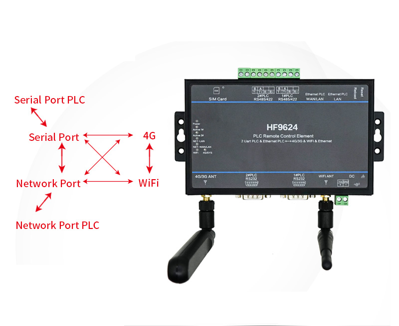 The HF9624 integrates 4G/3G,Wi-Fi, Ethernet, high-speed serial port, RS232/RS485/RS422 interfaces, and it is based on operation system for Ecos and contain webpage, TCP/IP stack. It supports remote monitor PLC products of different brand.