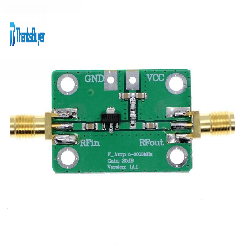 - This is a 5-6000 MHz RF signal power amplifier with a 20dB gain. It has a large dynamic range and a wide operating frequency range. The power supply voltage is 5VDC and the working current is 85mA. The maximum output power is+21dBm (100mW) at 1dB compression point. It is suitable for fixed gain amplification of all types of RF signals.