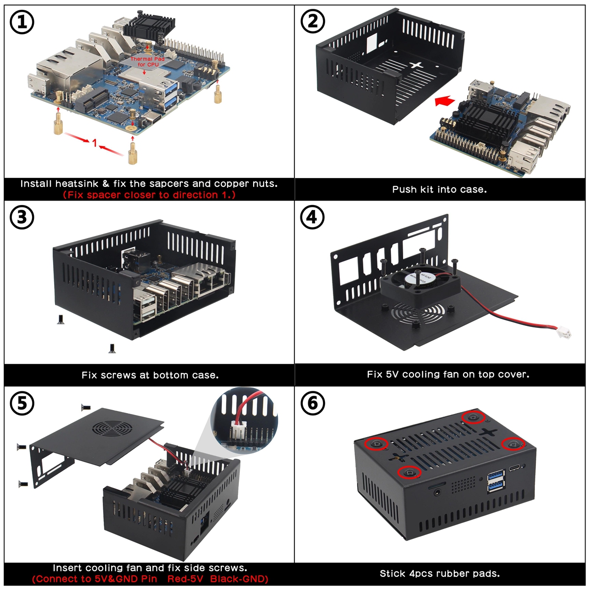 - Heat dissipation: active heat dissipation (mute cooling fan 4010) + passive heat dissipation (10mm aluminum heatsink)