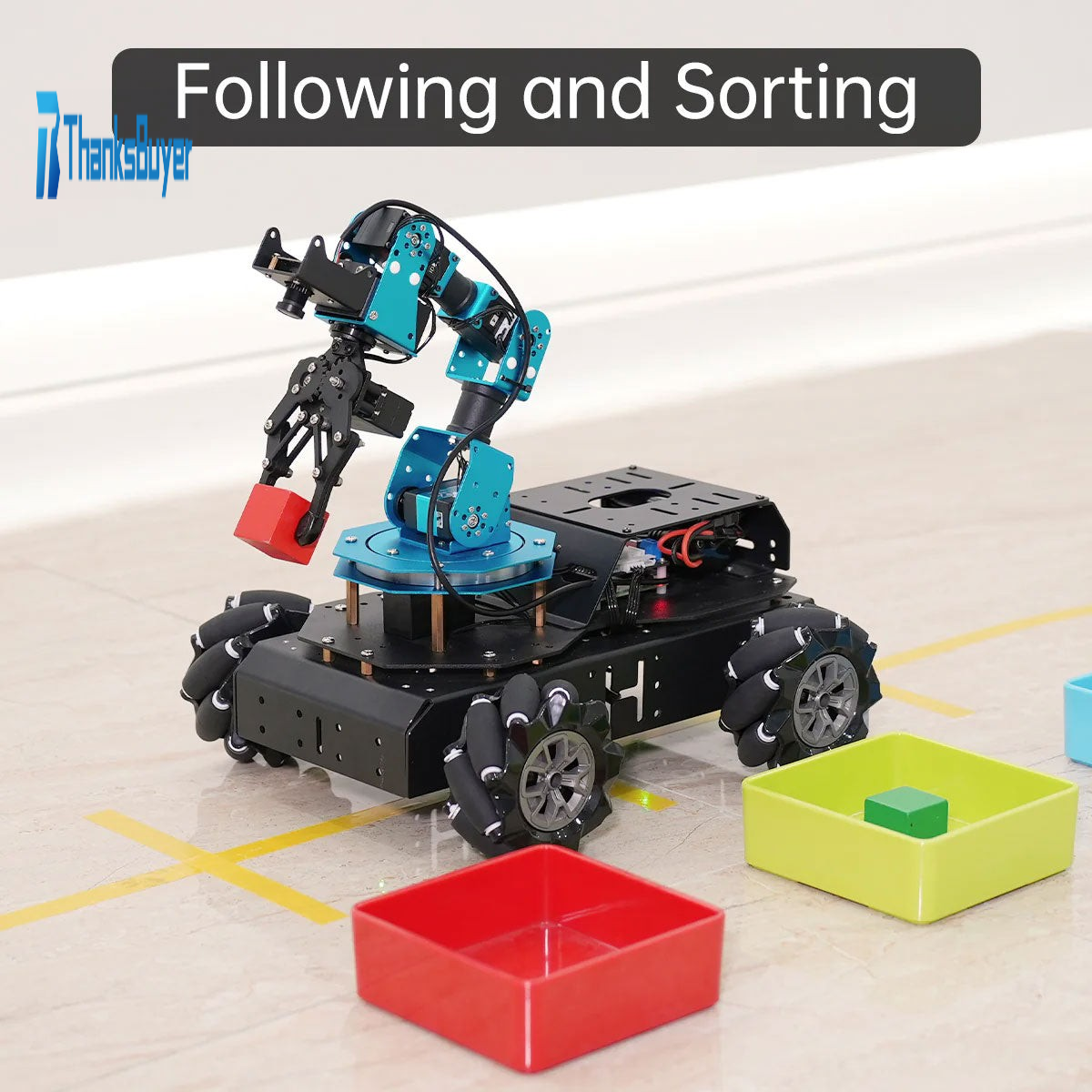 Removable mecanum wheels car makes it flexible to switch between two models, desktop robotic arm and mobile robotic arm. With ample tutorials and open source Python codes, ArmPi Pro is a perfect platform where you can learn ROS, robot technology and robot vision, curtail the project development period and fully experience AI!
