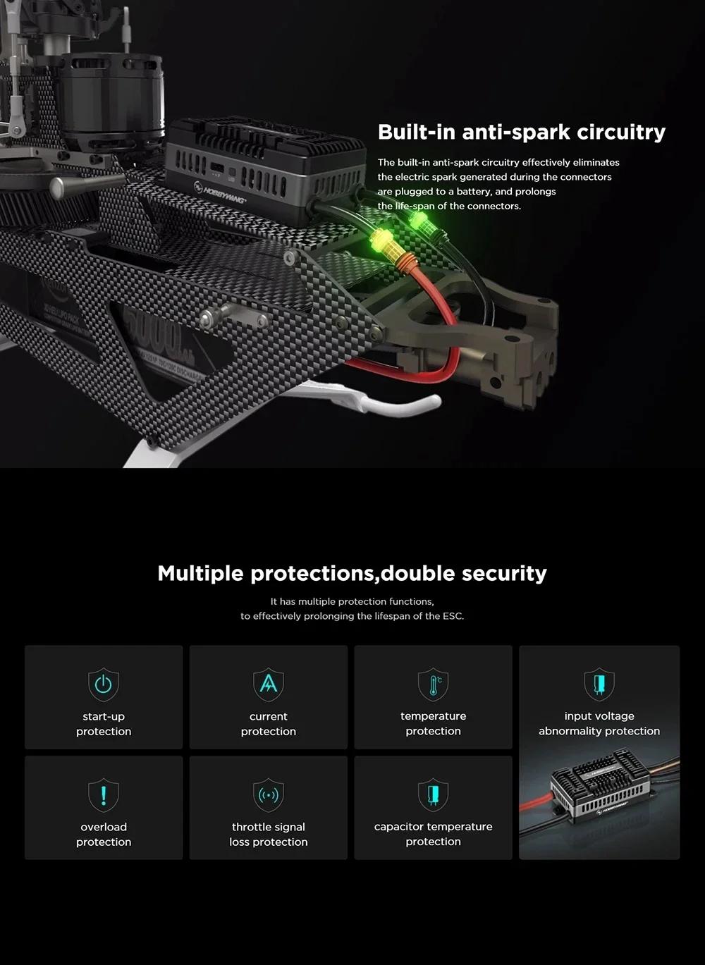 - Multiple protections: current protection, overload protection, temperature protection, throttle signal loss protection, and much more.