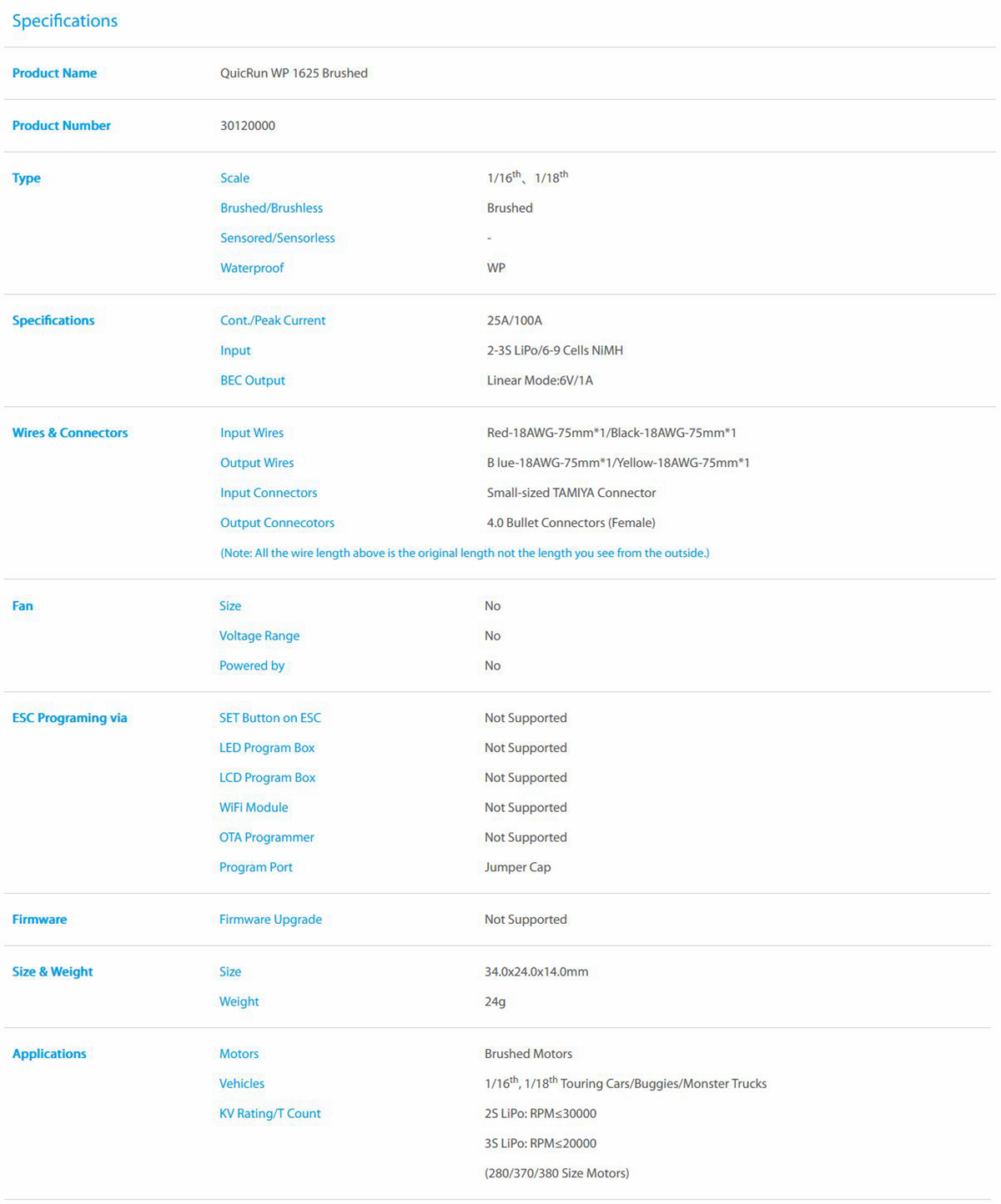 Hobbywing QuicRun WP 1625 Brushed ESC 25A Electronic Speed Control for Touring Cars Buggies