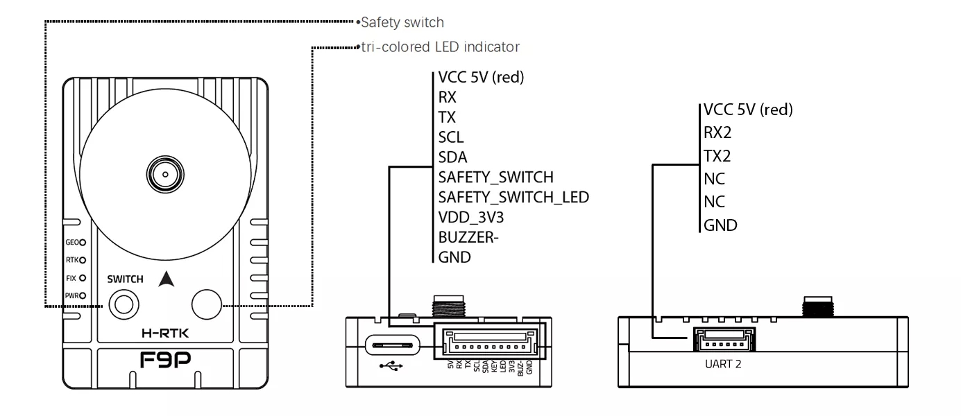 - H-RTK F9P is the latest differential high-precision GNSS positioning system series for Holybro. This system provides multi-band RTK with fast convergence times and reliable performance, concurrent reception of GPS, GLONASS, Galileo and BeiDou, and fast update rate for highly dynamic and high-volume applications with centimeter-accuracy. It uses a for UBLOX F9P module, a for IST8310 compass, and a tri-colored LED indicator. It also has an integrated safety switch for a simple and convenient operation.