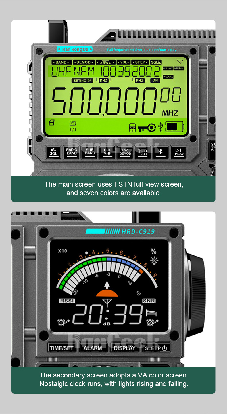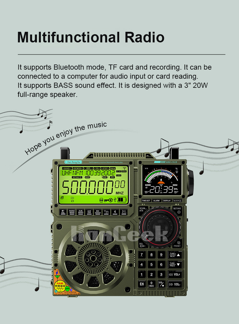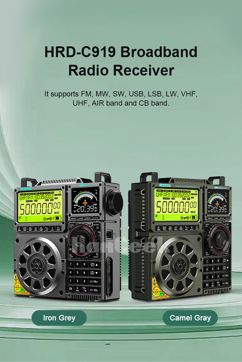 HRD-C919 Iron Grey (Retro Style) All Band Radio MW SW Full Frequency Receiver Bluetooth/Music Play
