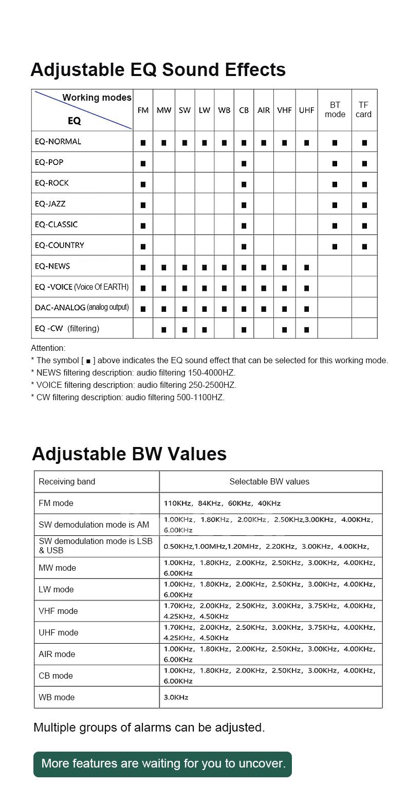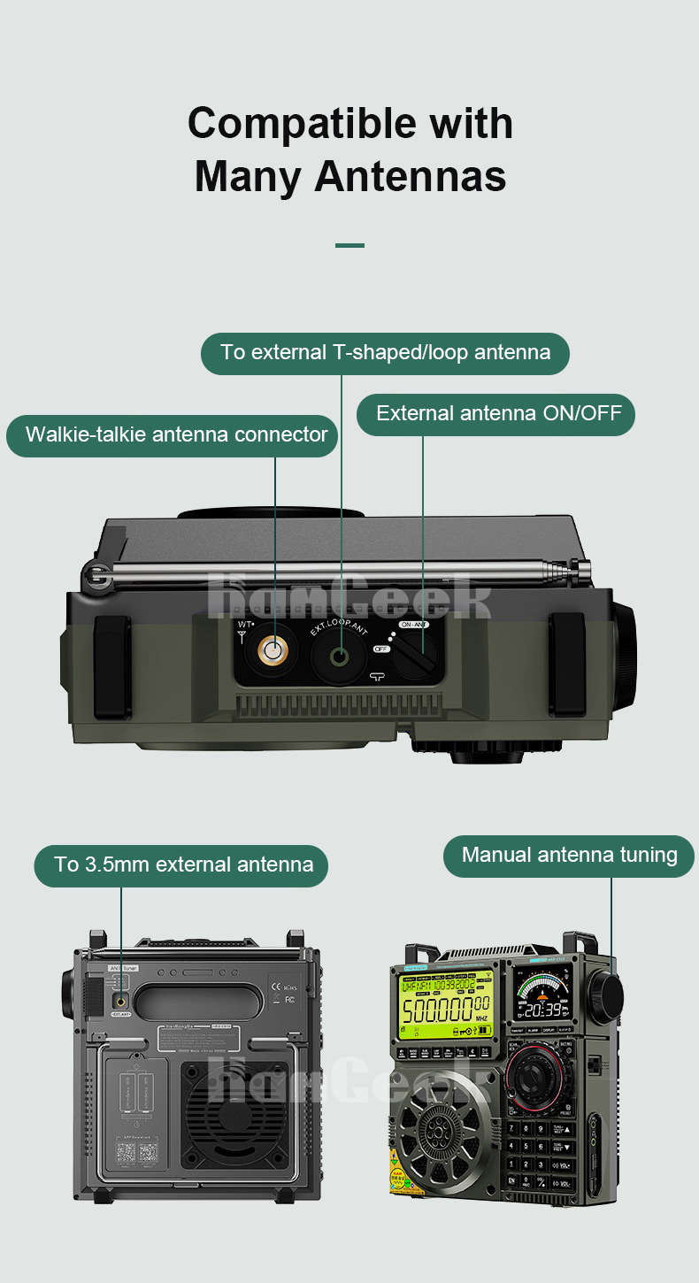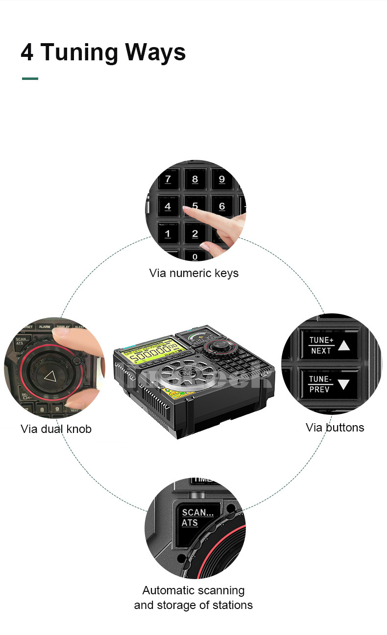 - SNR: MW SNR ≥18dB; FM SNR ≥40dB; SW SNR ≥ 40dB