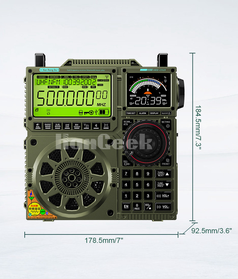 - Radio size: 178.5mm x 92.5mm x 184.5mm/7" x 3.6" x 7.3" (WxDxH)