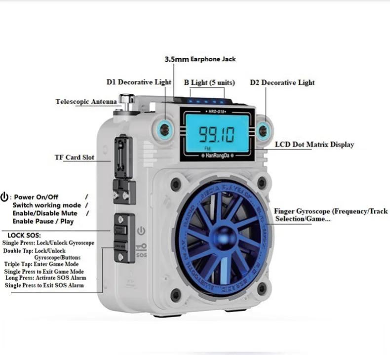 HRDG18 76-108MHz Portable FM Radio DSP Multifunctional Audio Speaker Support TF Card Play Mode with Stereo Earphone