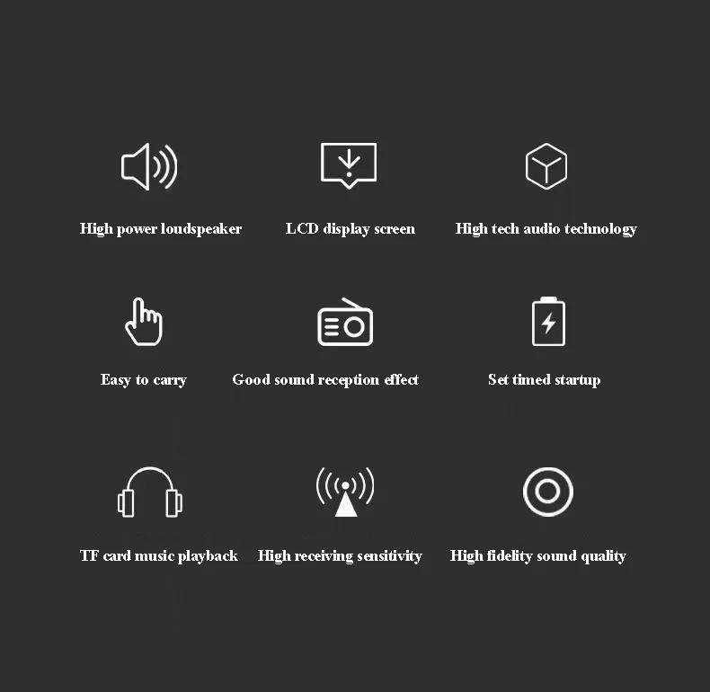 - High reception sensitivity: built-in DSP chip, FM receiving frequency: 76.0-108.0MHz, support automatic manual search and storage.