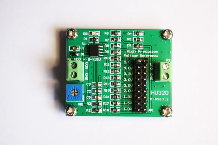 - The HU320 voltage reference module can select multiple voltage outputs through a selection switch (5.0V, 4.0V, 3.3V, 3.0V, 2.5V, 2.0V, 1.8V, 1.5V, 1.0V).