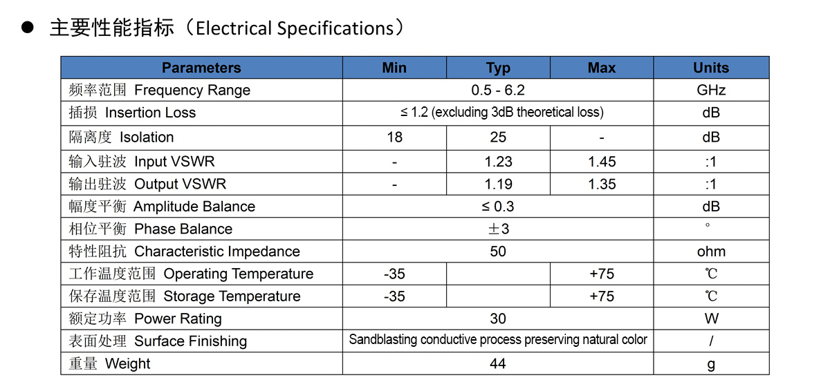 HXPD2-050620S 0.5-6.2GHz 2-Way Power Divider RF Microwave Power Splitter 500-6200MHz RF Combiner