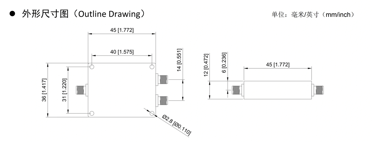 - Connectors: IN: SMA-F (female); OUT: SMA-F (female)