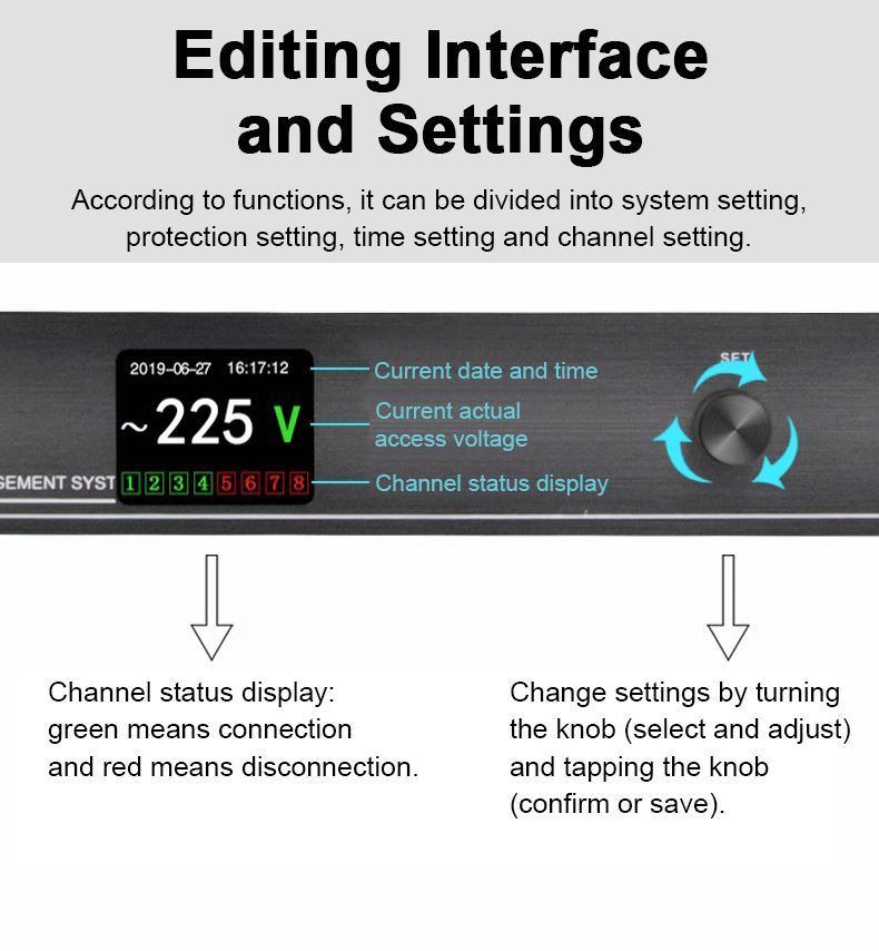 - Time setting: With a built-in clock chip, you can set the total power-on and power-off time of devices