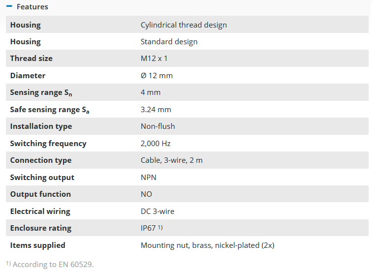 - 1 x Inductive Proximity Sensor