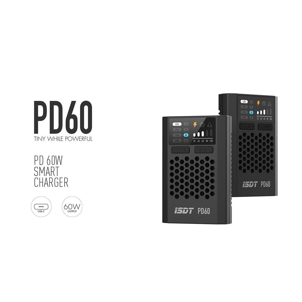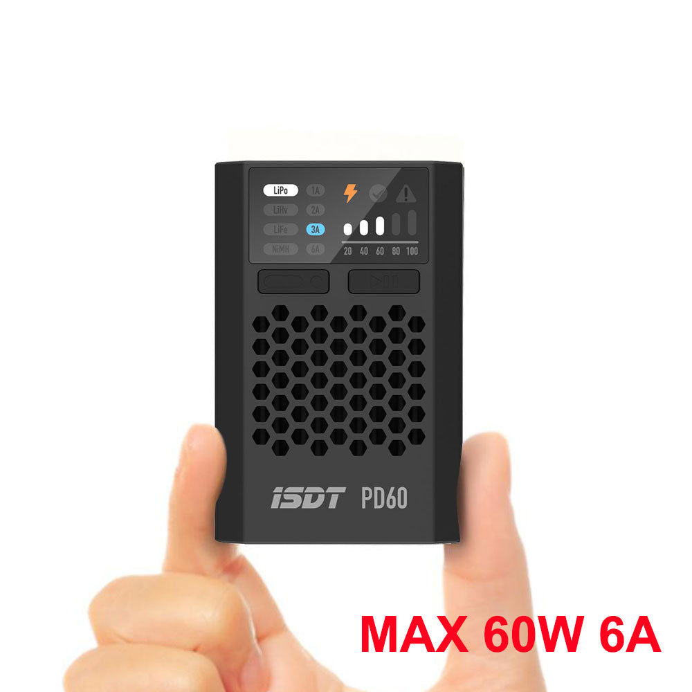 ISDT PD60 60W Lipo Battery Balance Charger Type-C Input For Lipo LiHV LiFe NIMH/Cd Battery For RC Car Racing Drone