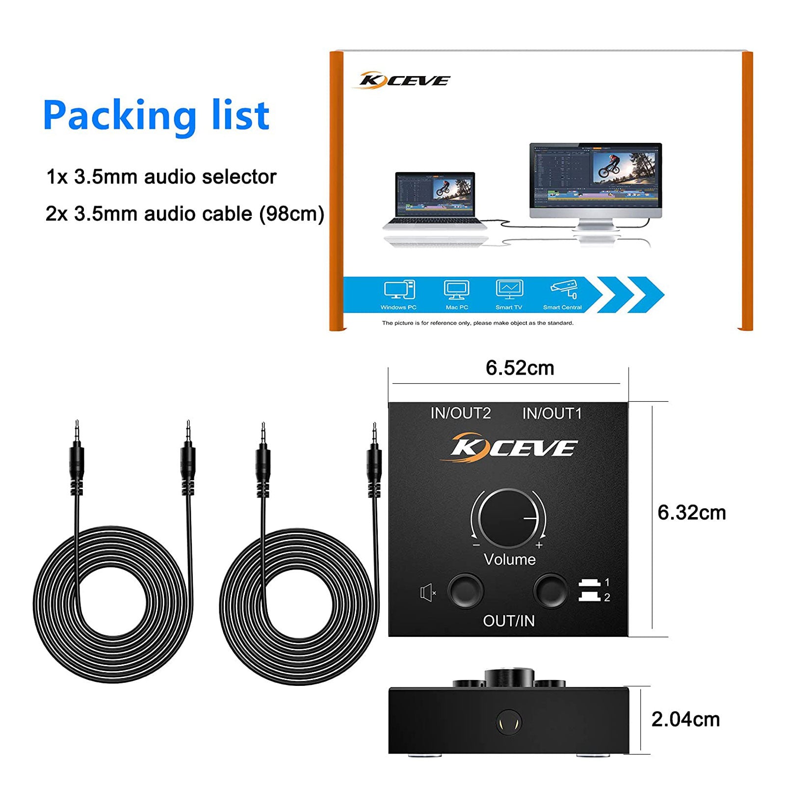 KC-A212 3.5MM Audio Switch Audio Switcher 2 IN 1 OUT or 1 IN 2 OUT for 3.5MM Headphone Speaker