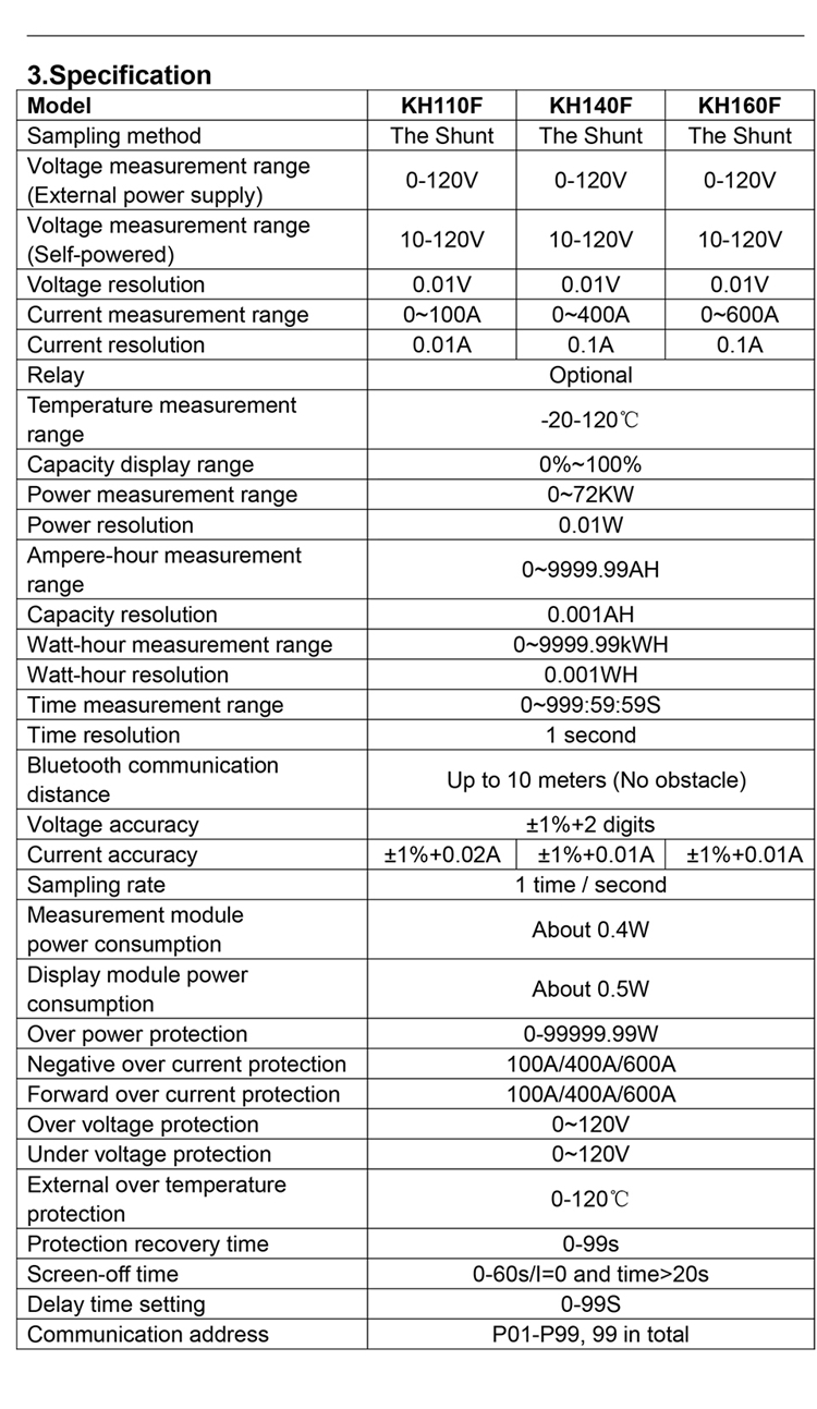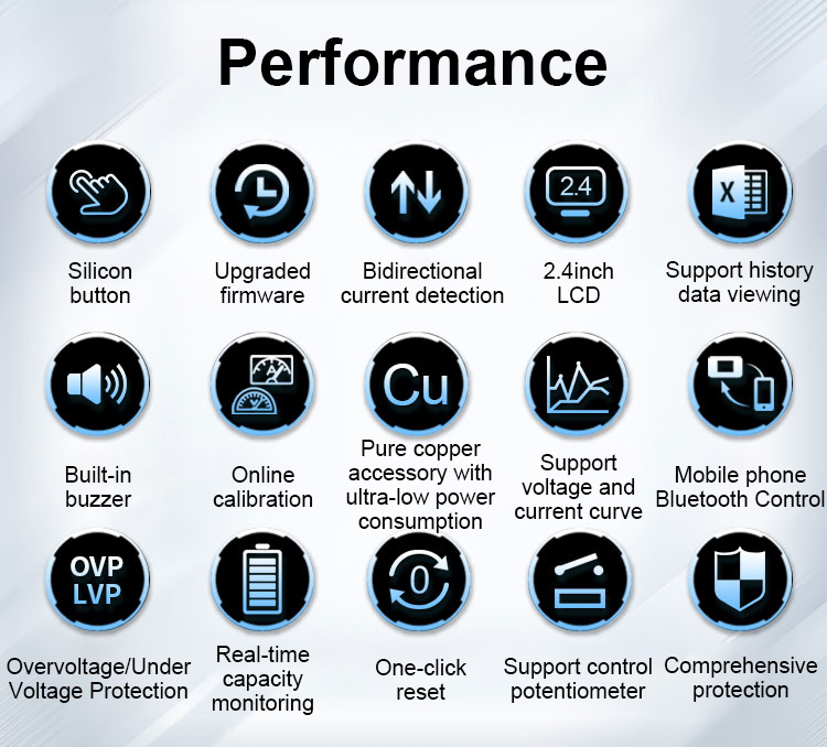 KH160F Grey Coulombmeter Voltmeter and Amperemeter Battery Monitor 2.4inch LCD Screen with Built-in Buzzer