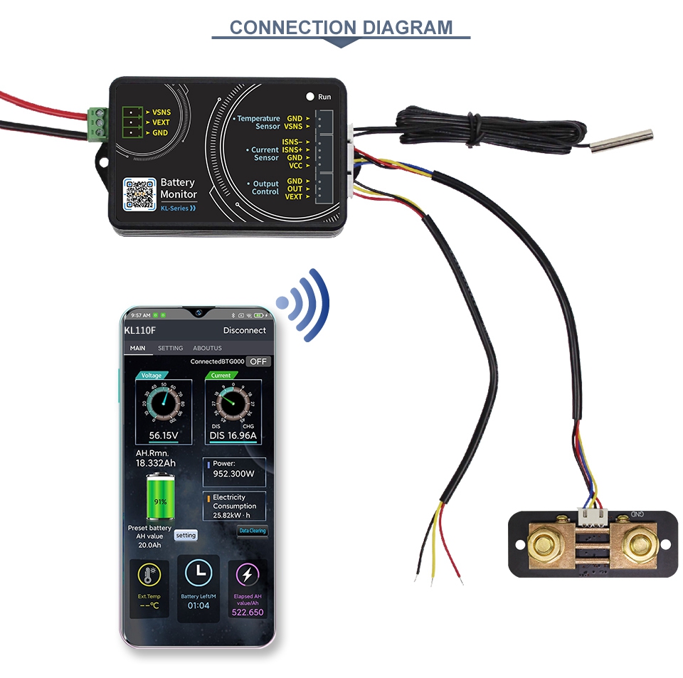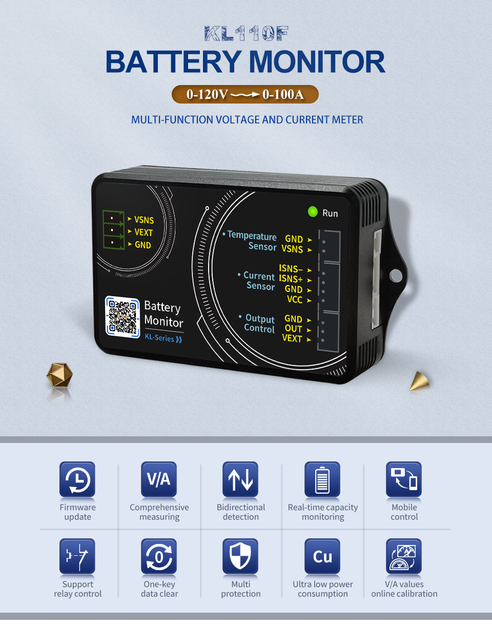 KL110F 100A Battery Monitor Coulomb Meter Voltage Current Meter Supports Mobile Phone APP Control