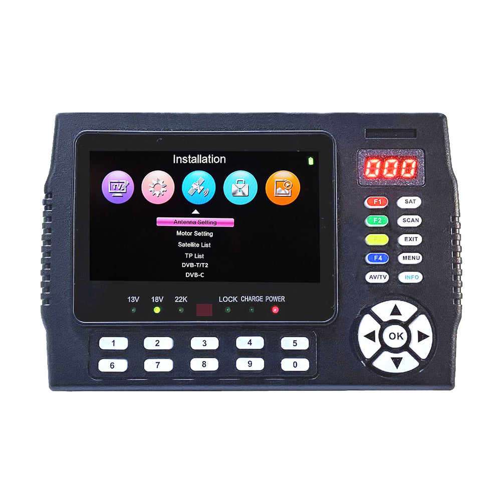 * 4.3" IPS (800*480 HD). High-definition TFT LCD screen which can display channels (DVB-S/S 2+T/T2+C); Support DVB-S/S2 MP4 HEVC (H.265) AVS/AVS+